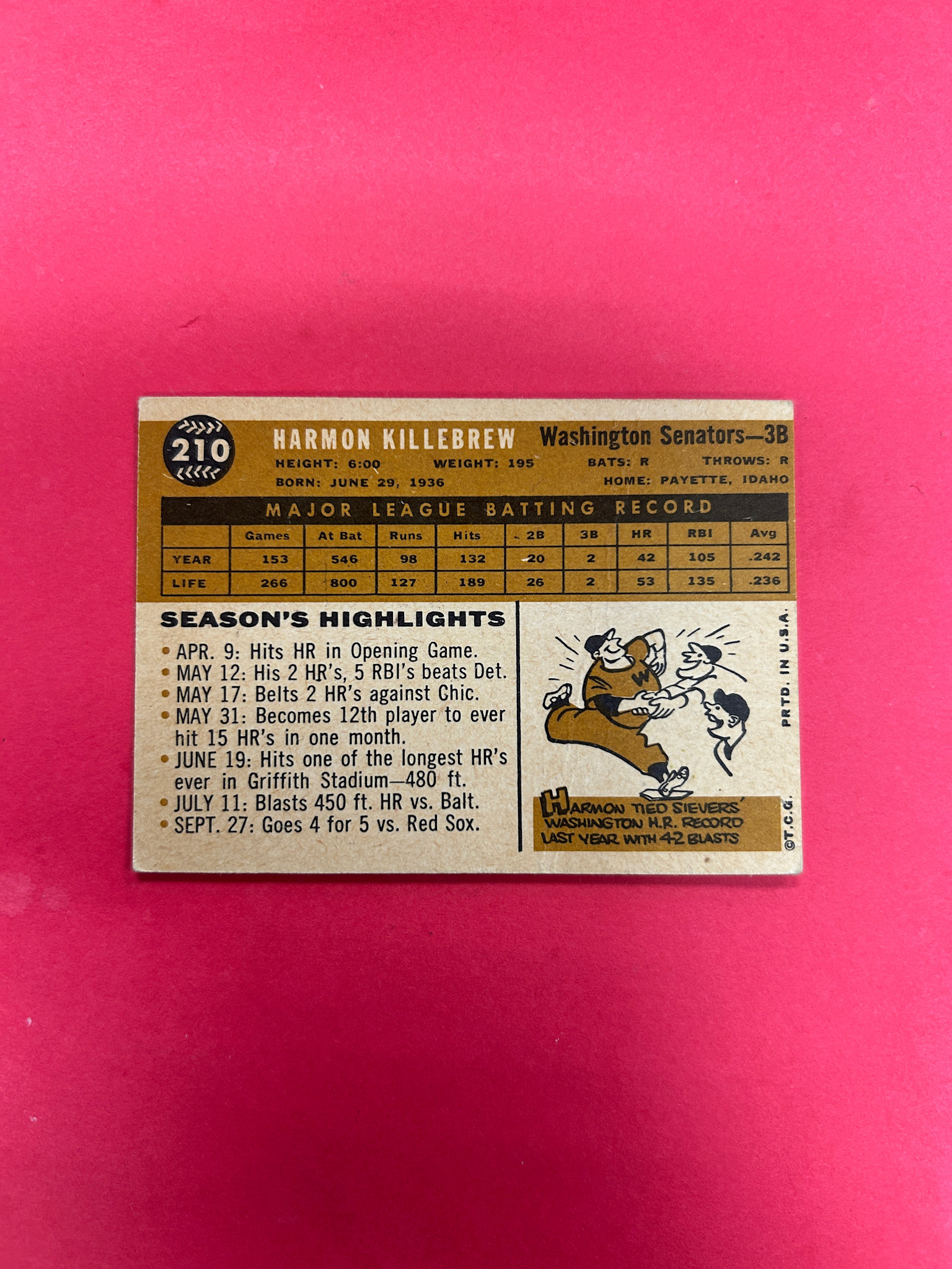 This is it! 1960 TOPPS HARMON KILLEBREW #210 EX-NM