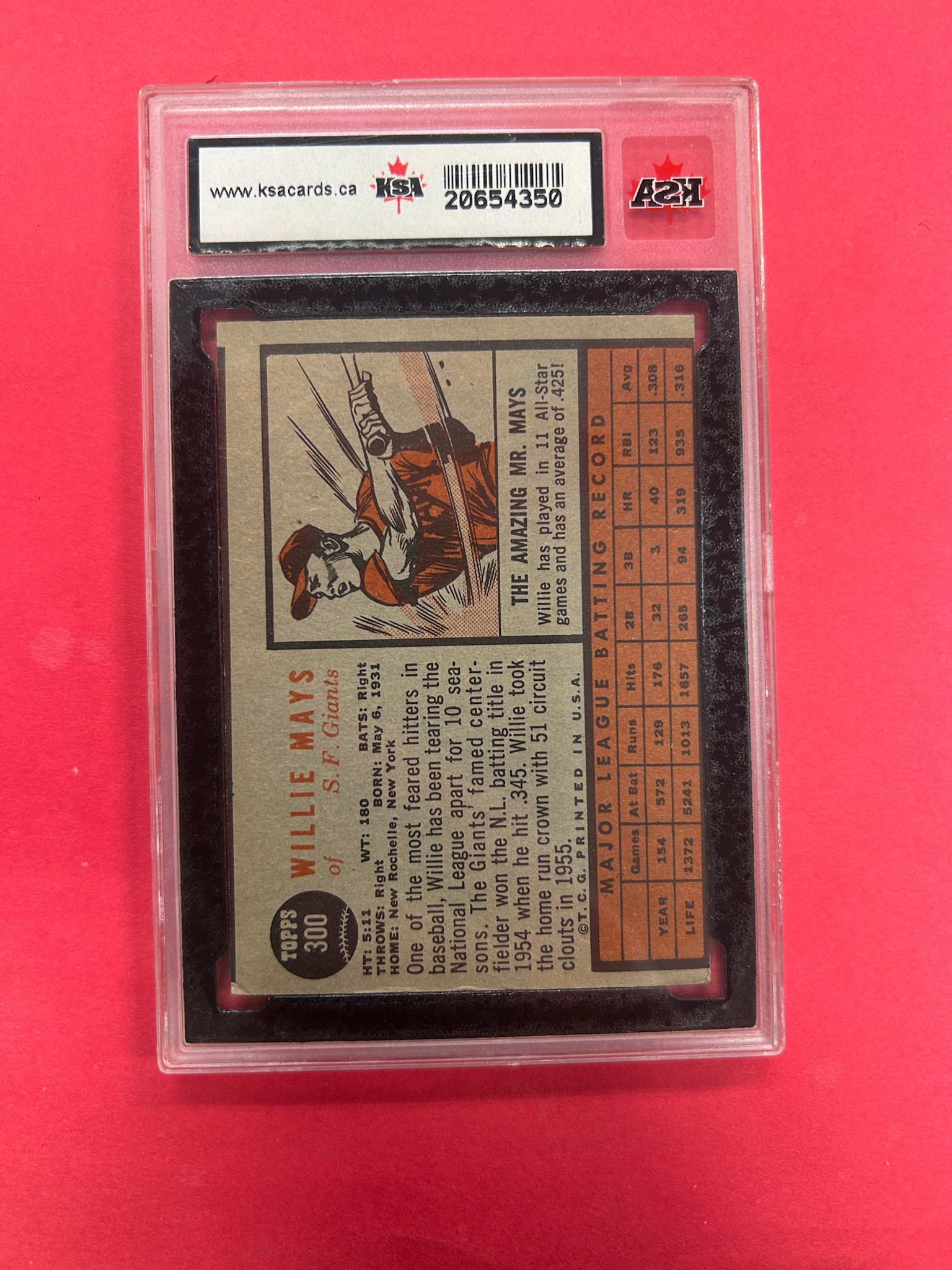 This is it! 1962 TOPPS WILLIE MAYS KSA GRADED 4