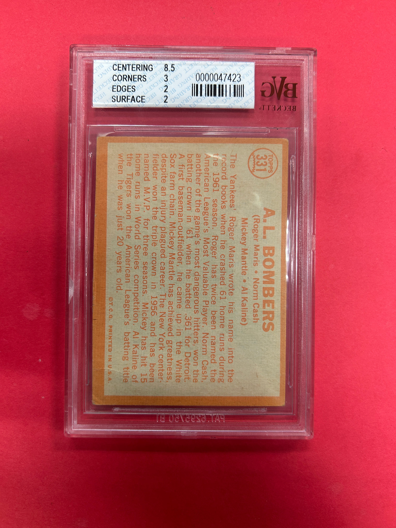 1964 TOPPS AL BOMBERS MARIS/ CASH/ MANTLE/ KALINE BECKETT GRADED 2.5