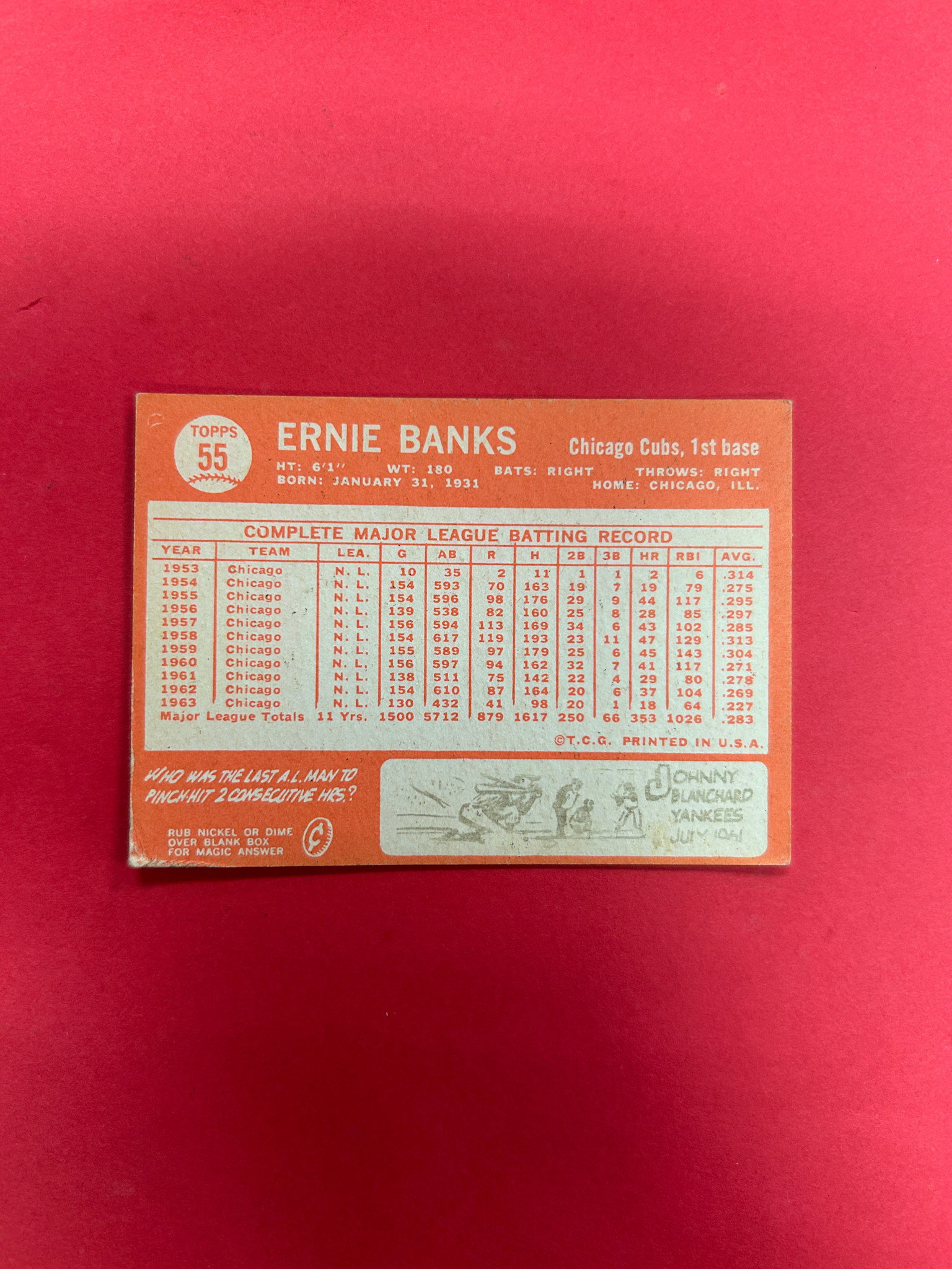 This is it! 1964 TOPPS ERNIE BANKS #55 EX-NM