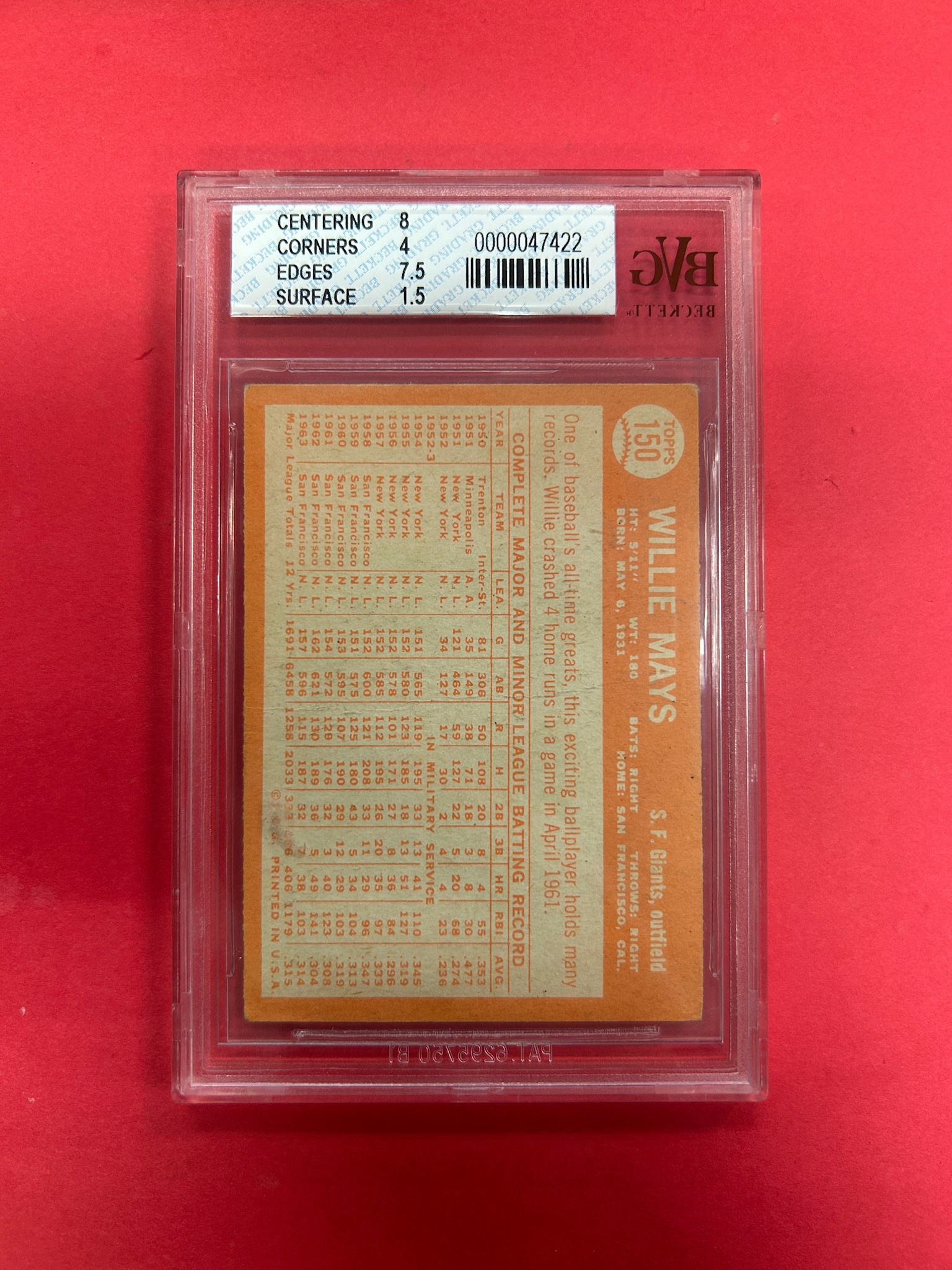 This is it! 1964 TOPPS WILLIE MAYS BECKETT GRADED 2.5