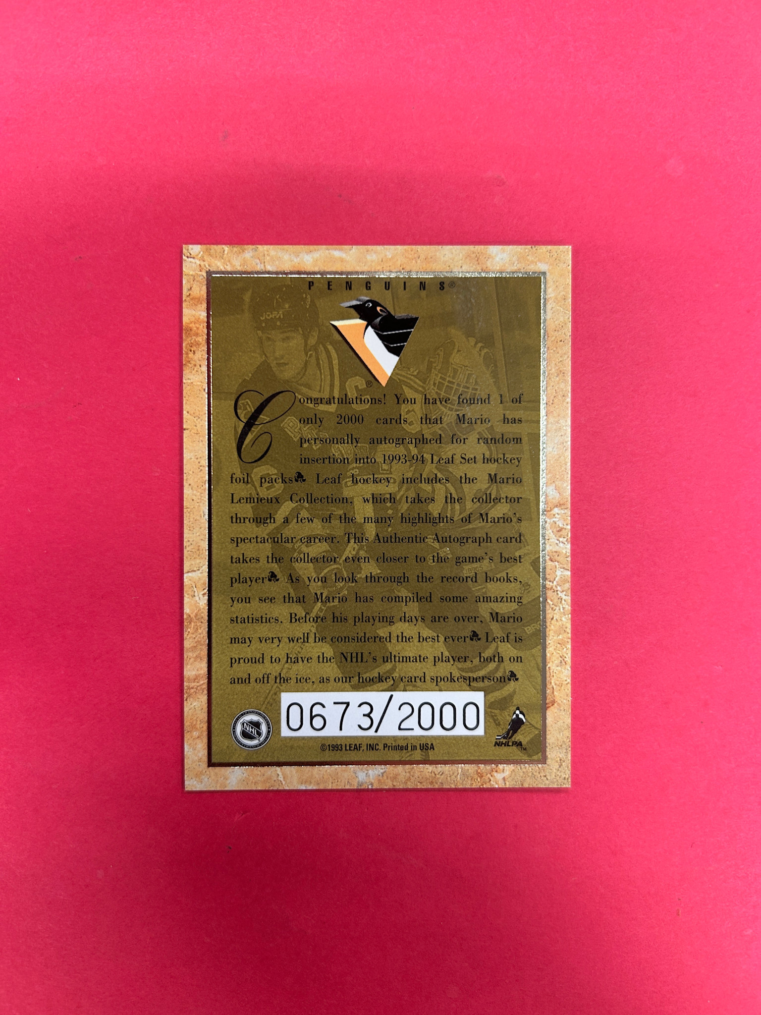 This is it! 1993 LEAF HOCKEY MARIO LEMIEUX AUTHENTIC AUTOGRAPH /2000