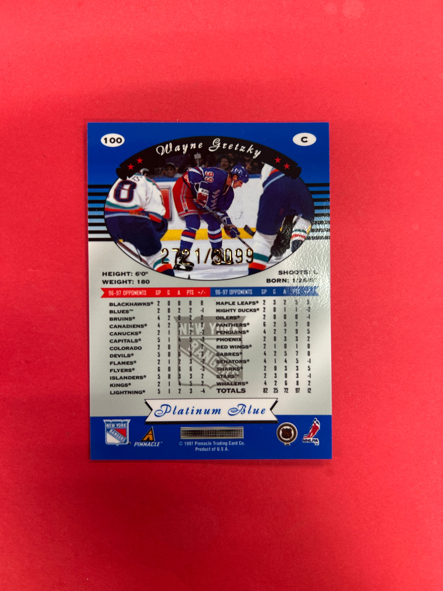 1997 TOTALLY CERTIFIED WAYNE GRETZKY PLATINUM BLUE /3099