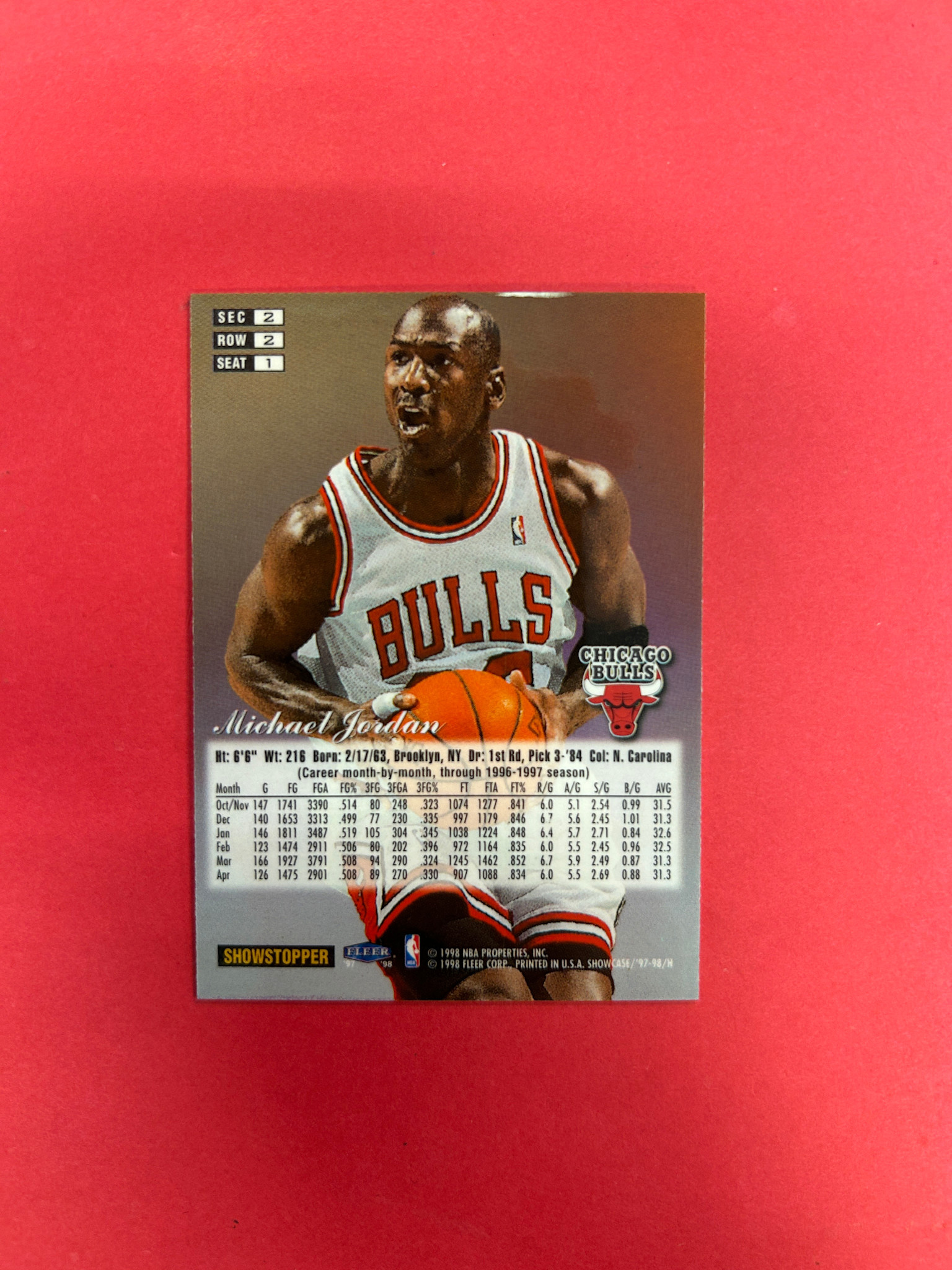 1998 FLAIR SHOWCASE MICHAEL JORDAN SHOWSTOPPER ROW 2 SEAT 1 SSP