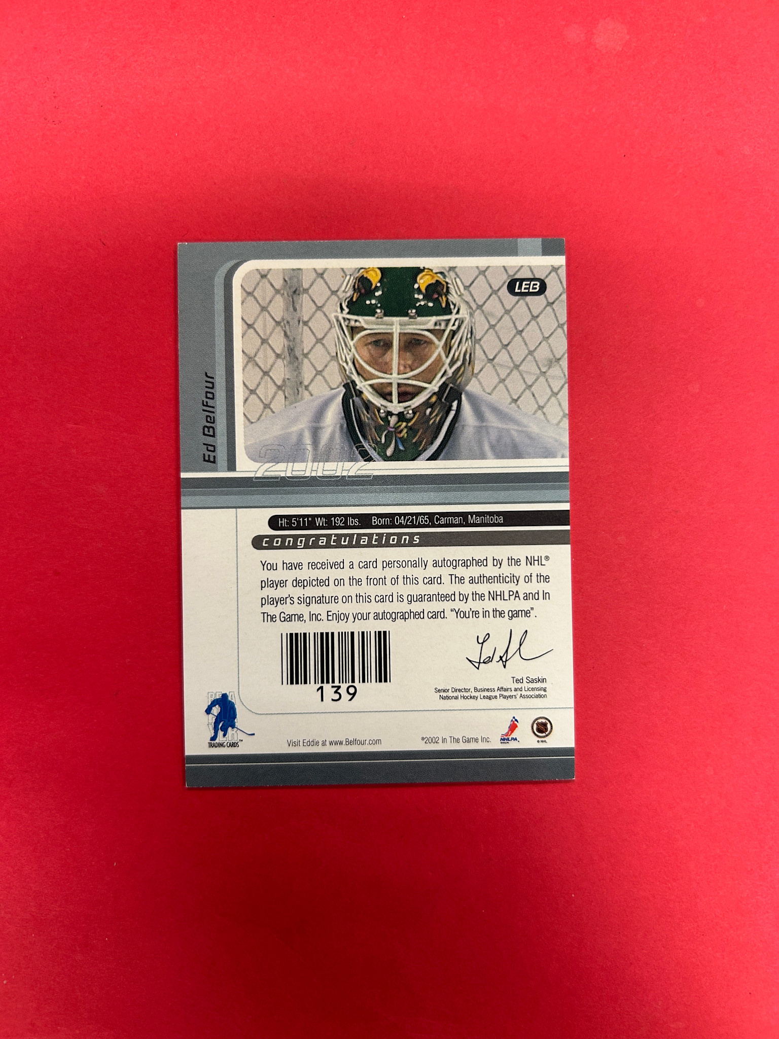 2002 IN THE GAME SIGNATURE SERIES ED BELFOUR VAULT AUTOGRAPH