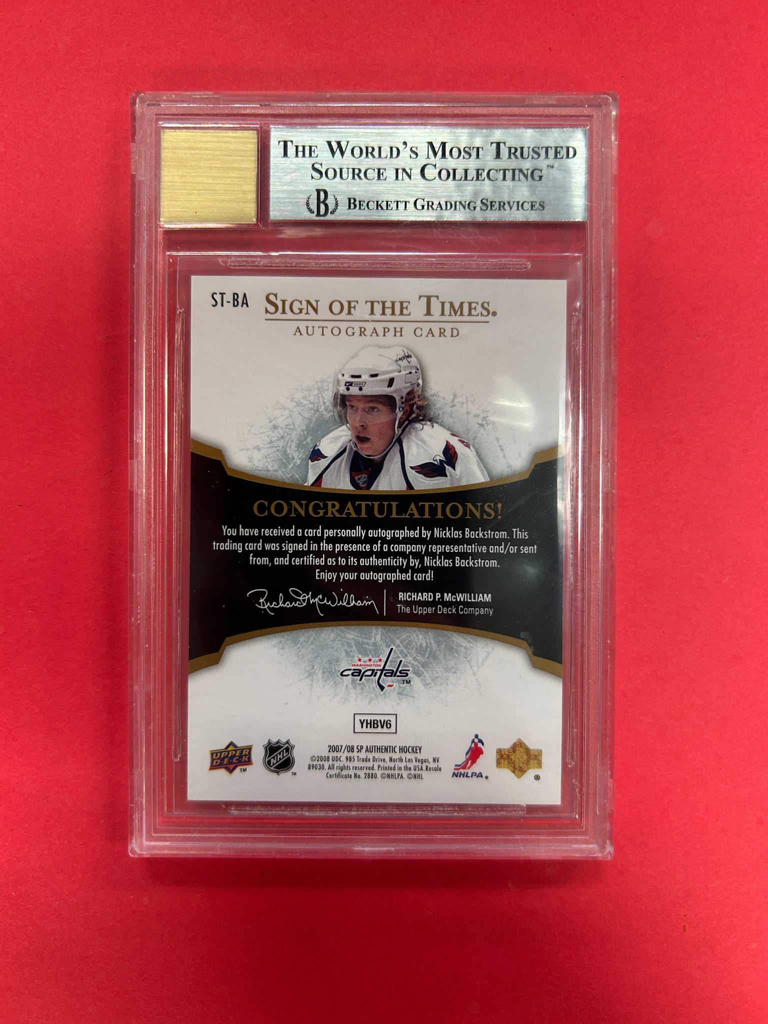 This is it! 2007-08 SP AUTHENTIC NICKLAS BACKSTROM SIGN OF THE TIMES ROOKIE BECKETT GRADED 8 AUTO 8