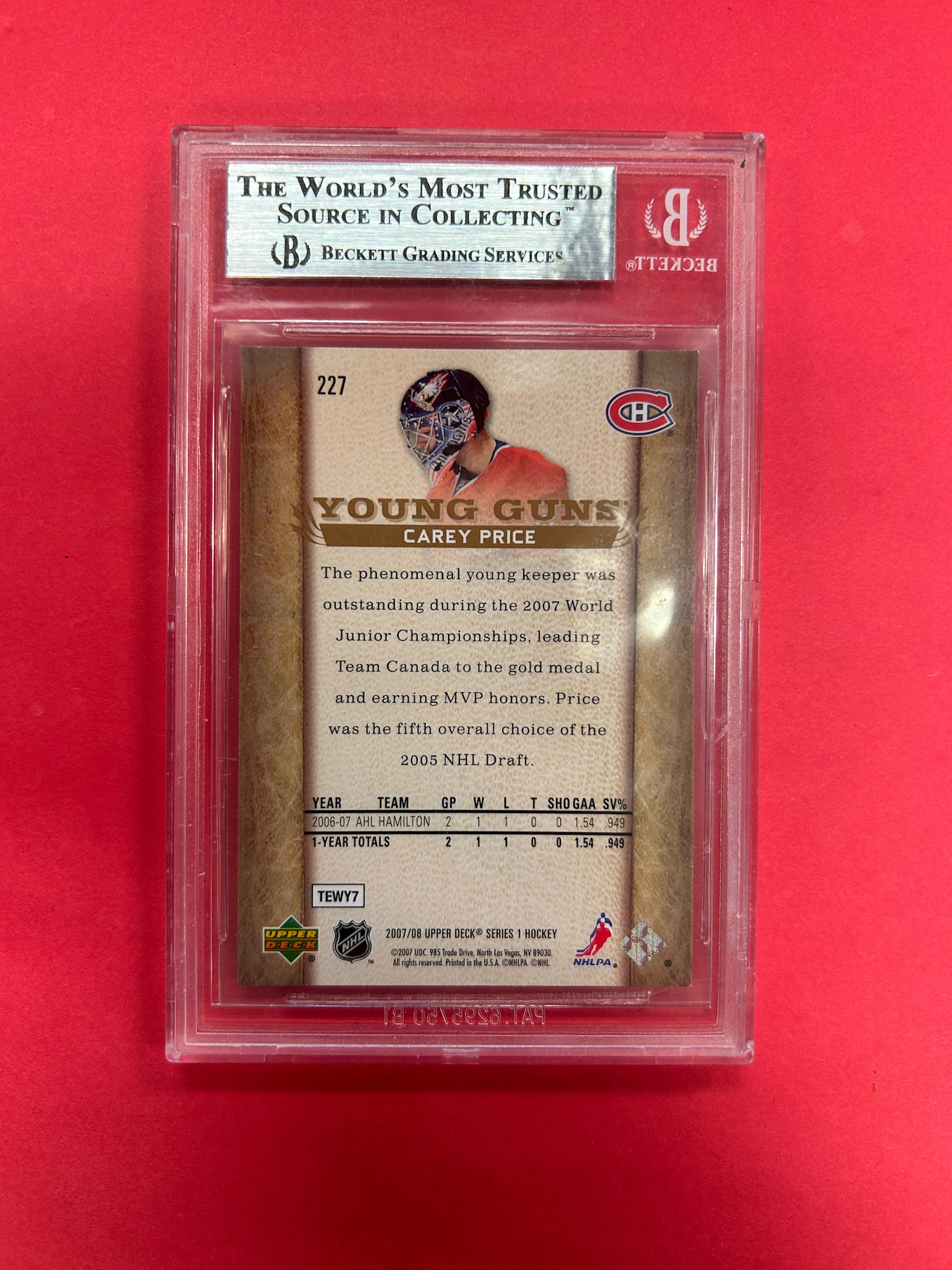 This is it! 2007-08 UPPER DECK SERIES 1 CAREY PRICE YOUNG GUNS BECKETT GRADED 8.5
