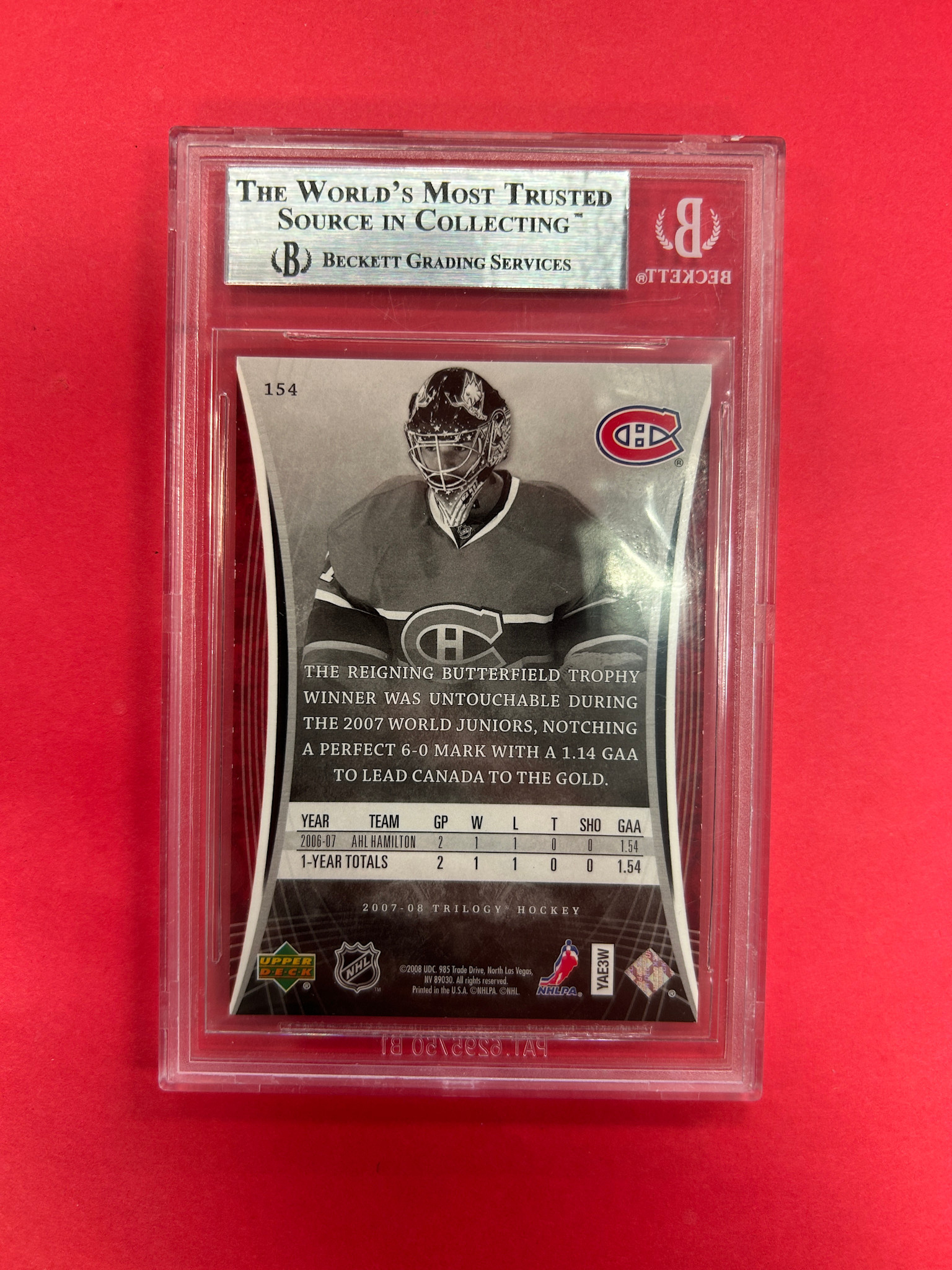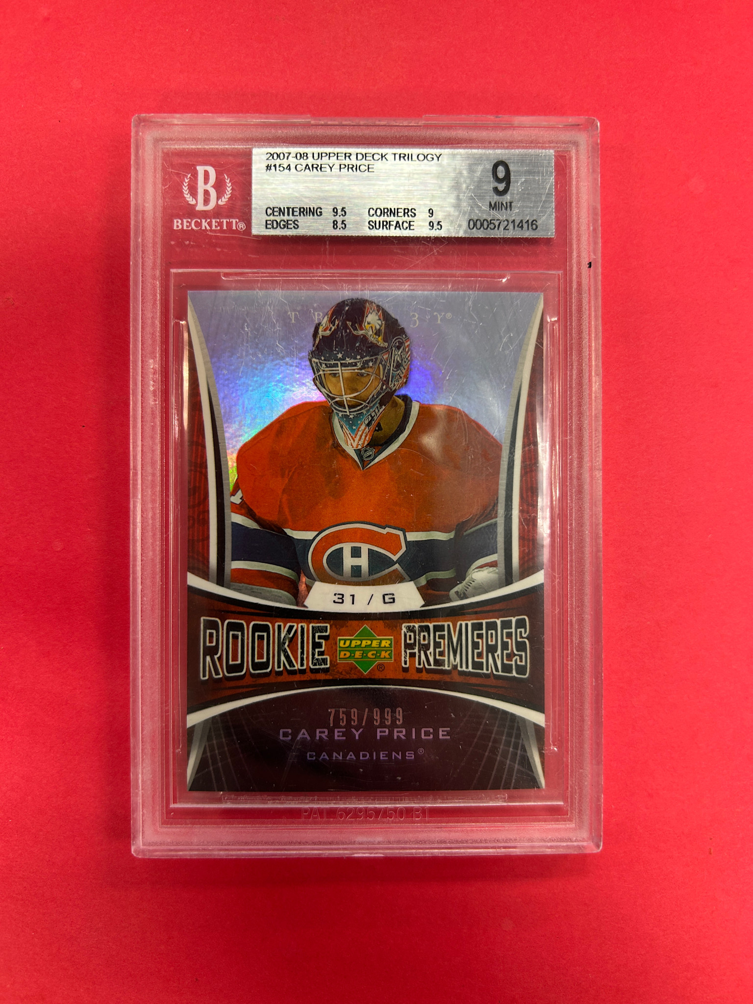 This is it! 2007-08 UPPER DECK TRILOGY CAREY PRICE ROOKIE PREMIERES /999 BECKETT GRADED 9