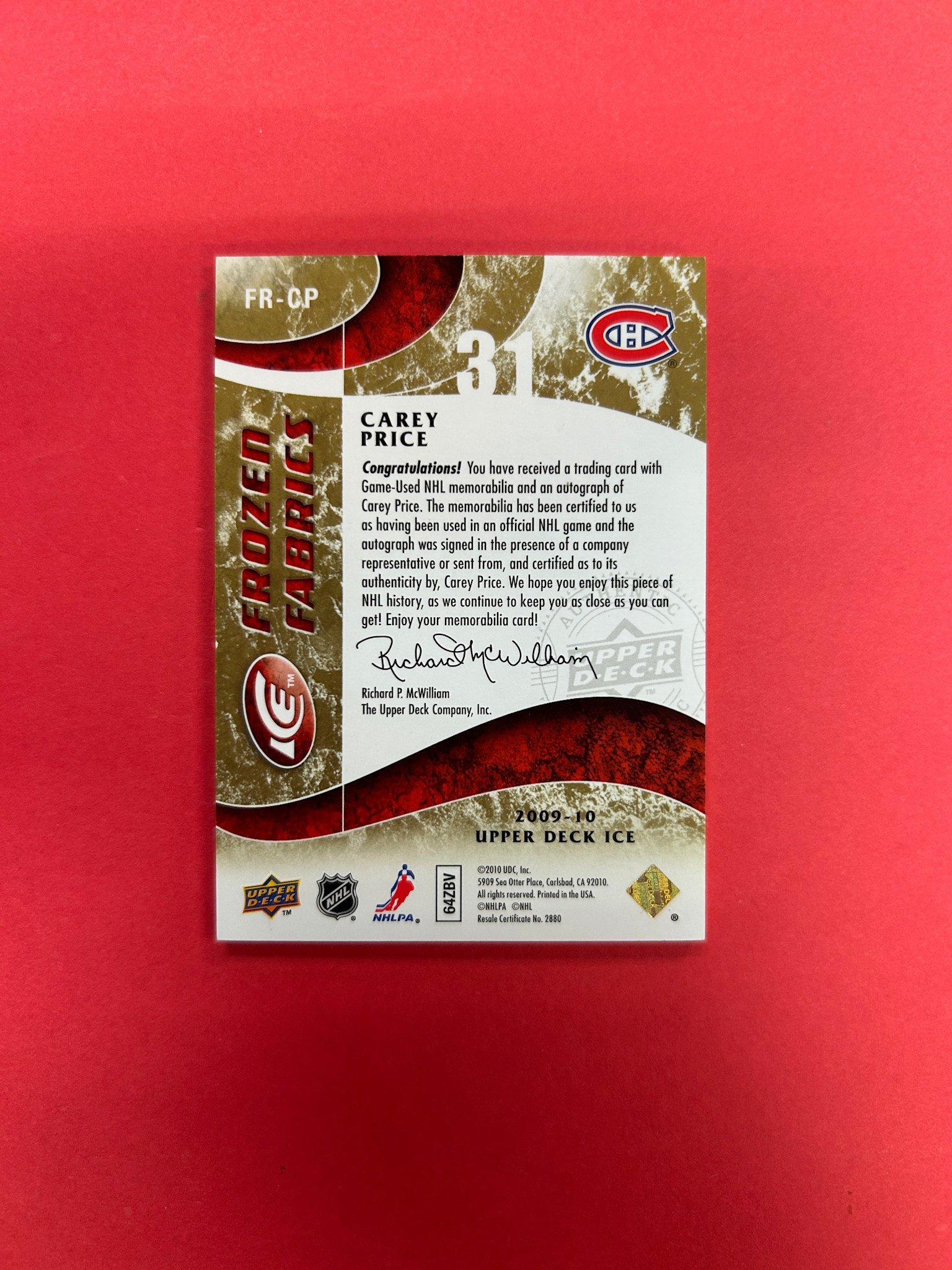 2009-10 UPPER DECK ICE CAREY PRICE FROZEN FABRICS PATCH AUTO 5/5