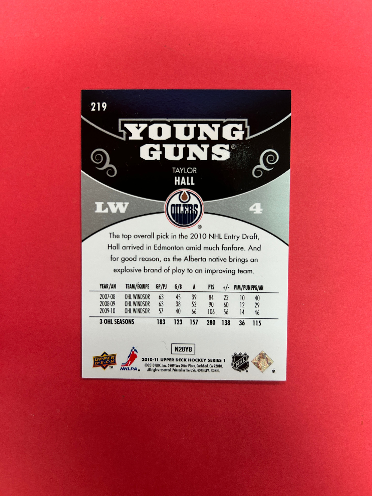 2010-11 UPPER DECK SERIES 1 TAYLOR HALL YOUNG GUNS AUTOGRAPHED IN PERSON