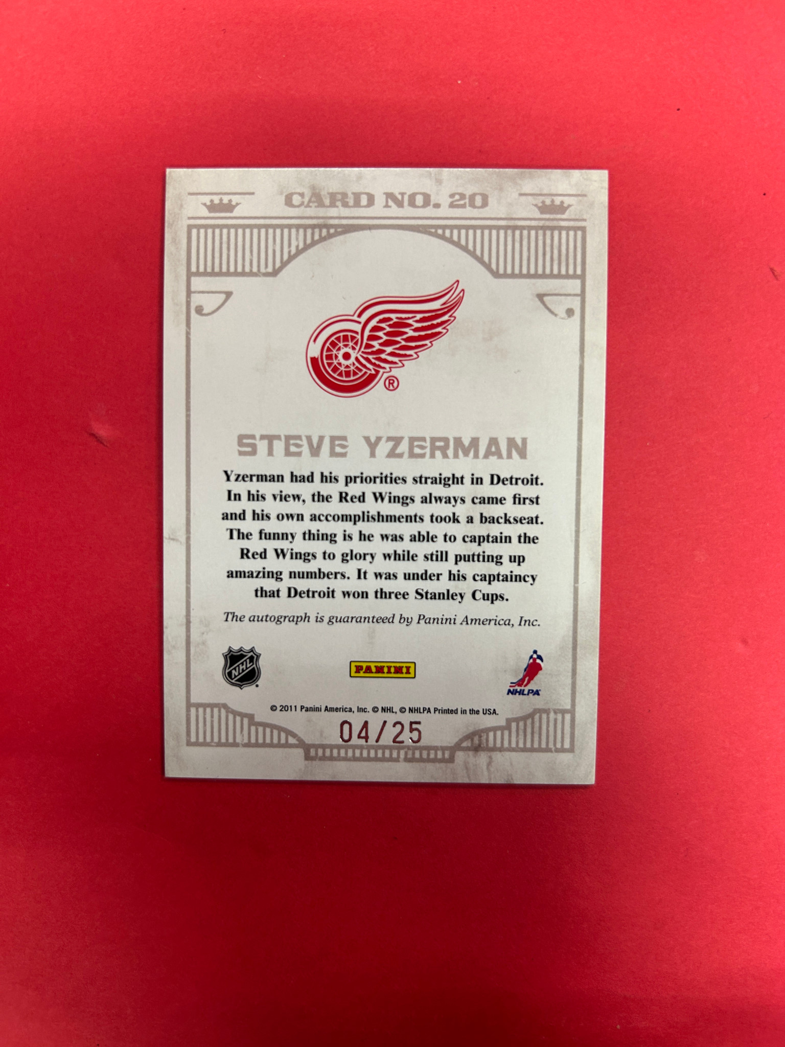 2011-12 PANINI CROWN ROYALE STEVE YZERMAN ICE KINGS AUTOGRAPH /25