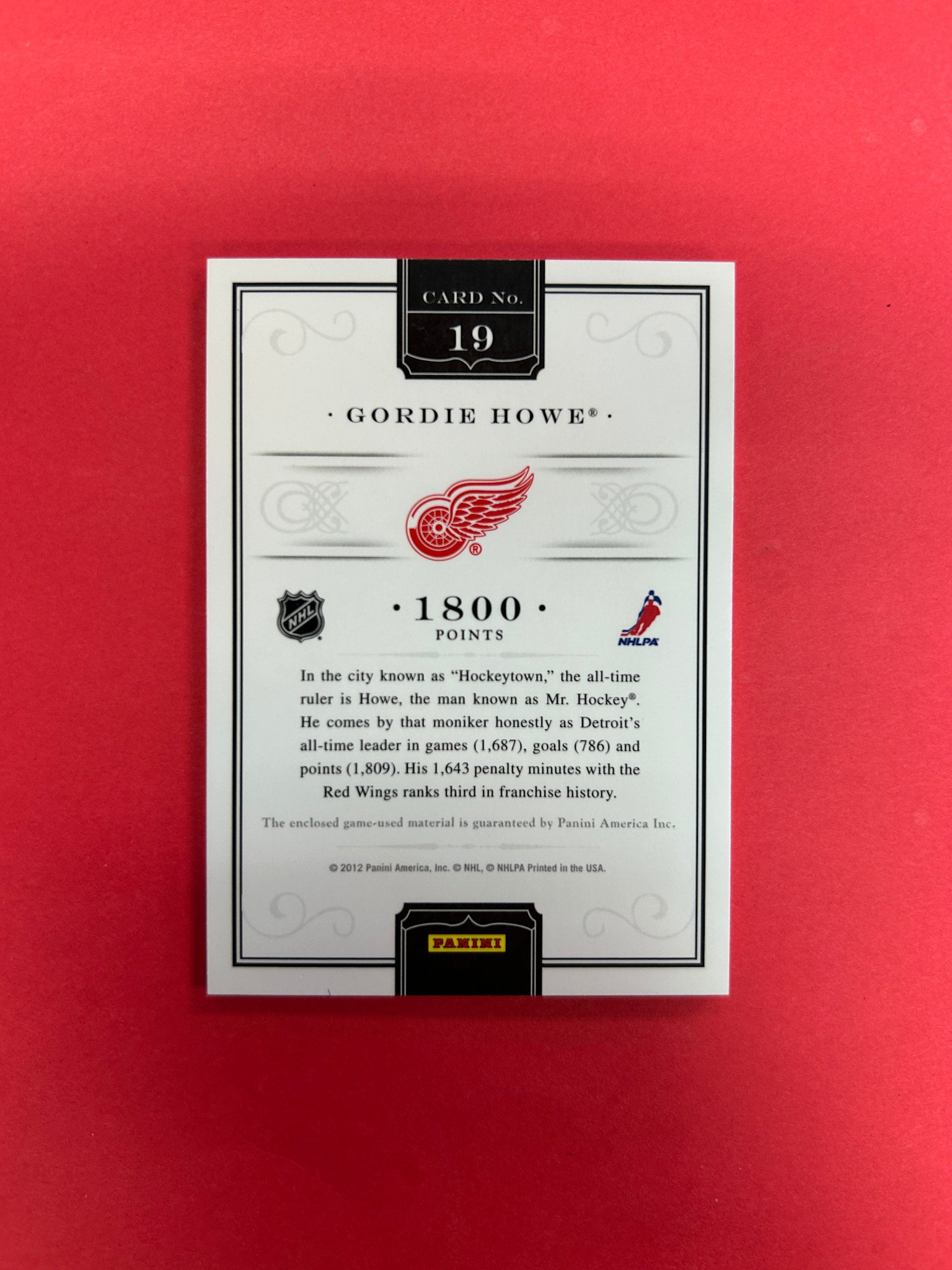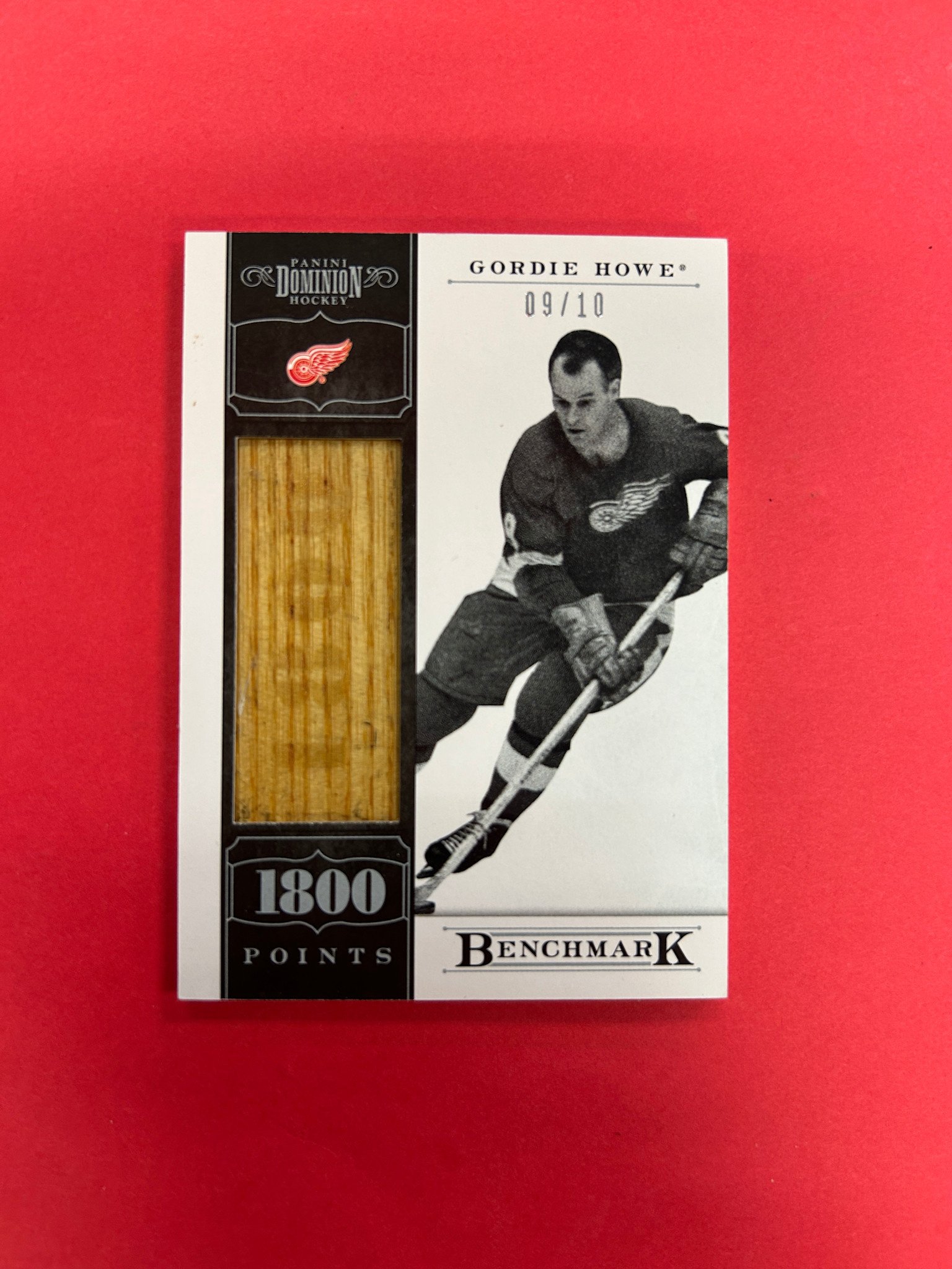 2011-12 PANINI DOMINION GORDIE HOWE BENCHMARKS 1800 GAME USED STICK 9/10 JERSEY NUMBERED