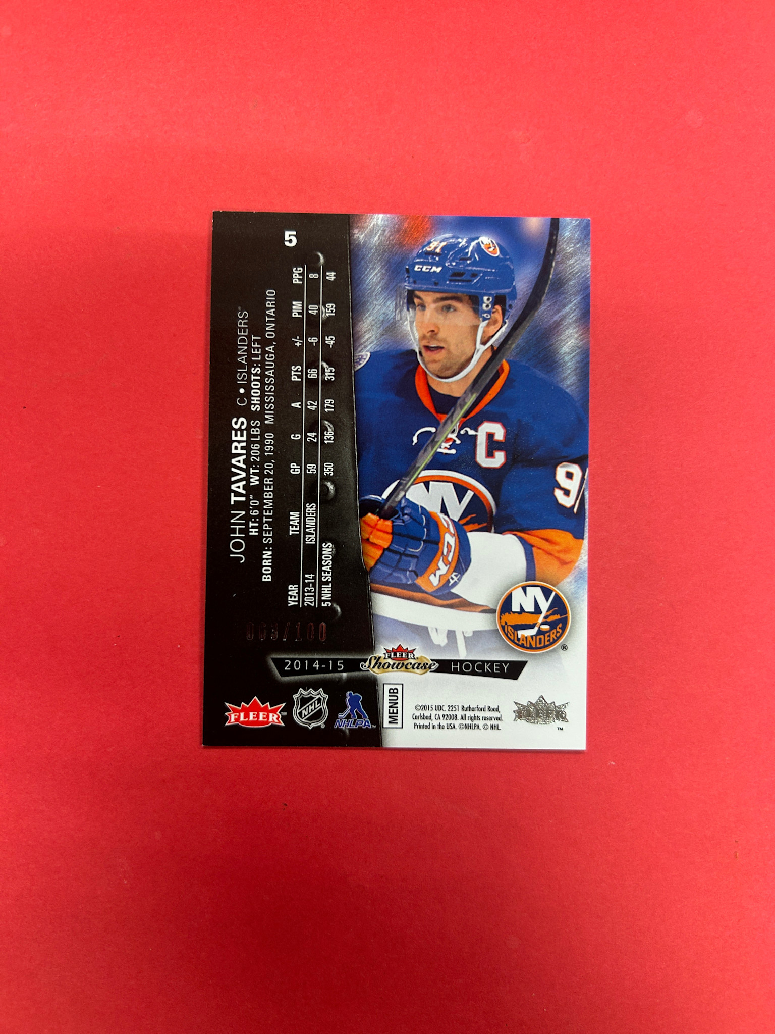 2014-15 FLEER METAL UNIVERSE JOHN TAVARES PRECIOUS METAL GEMS /100