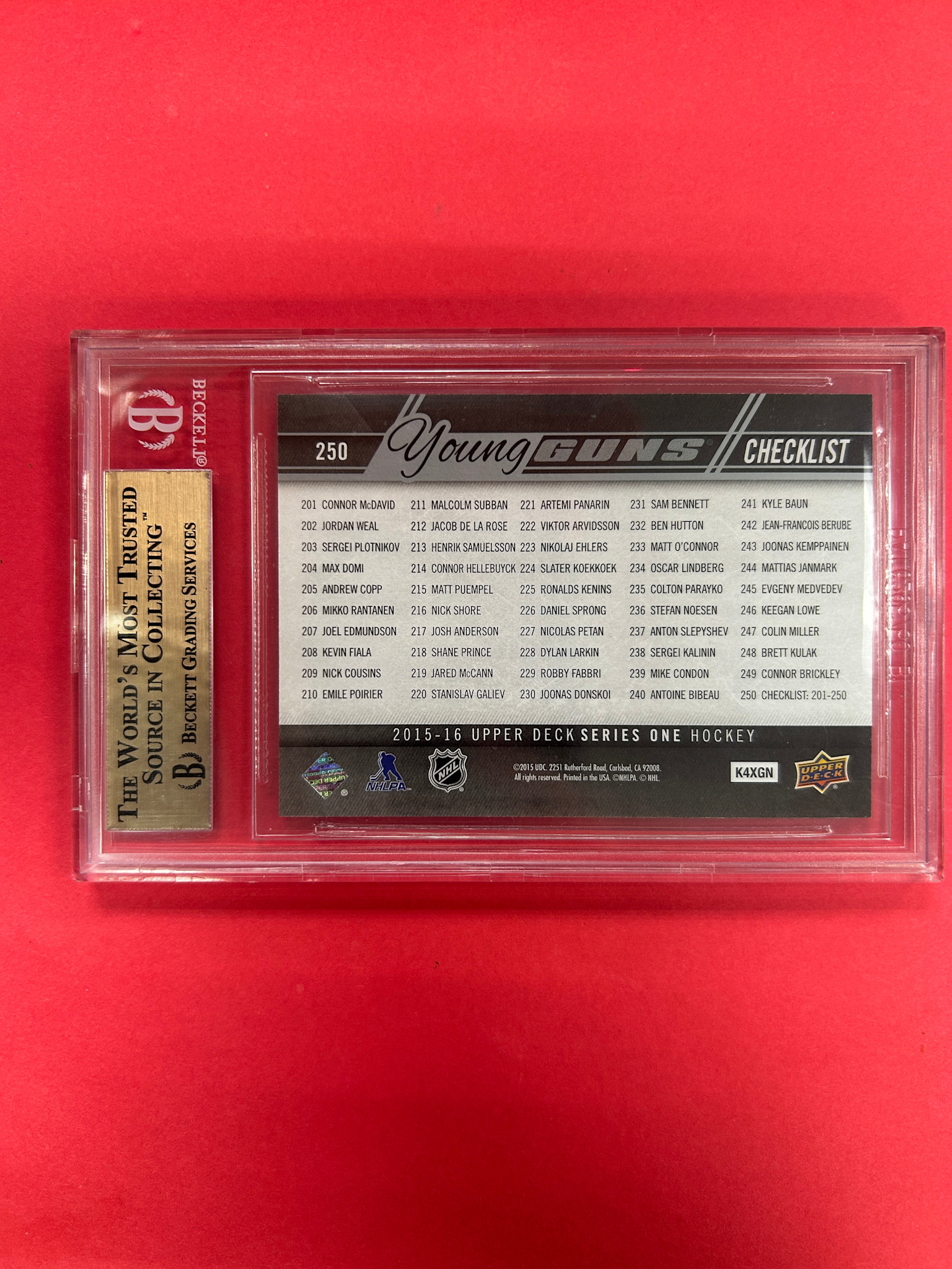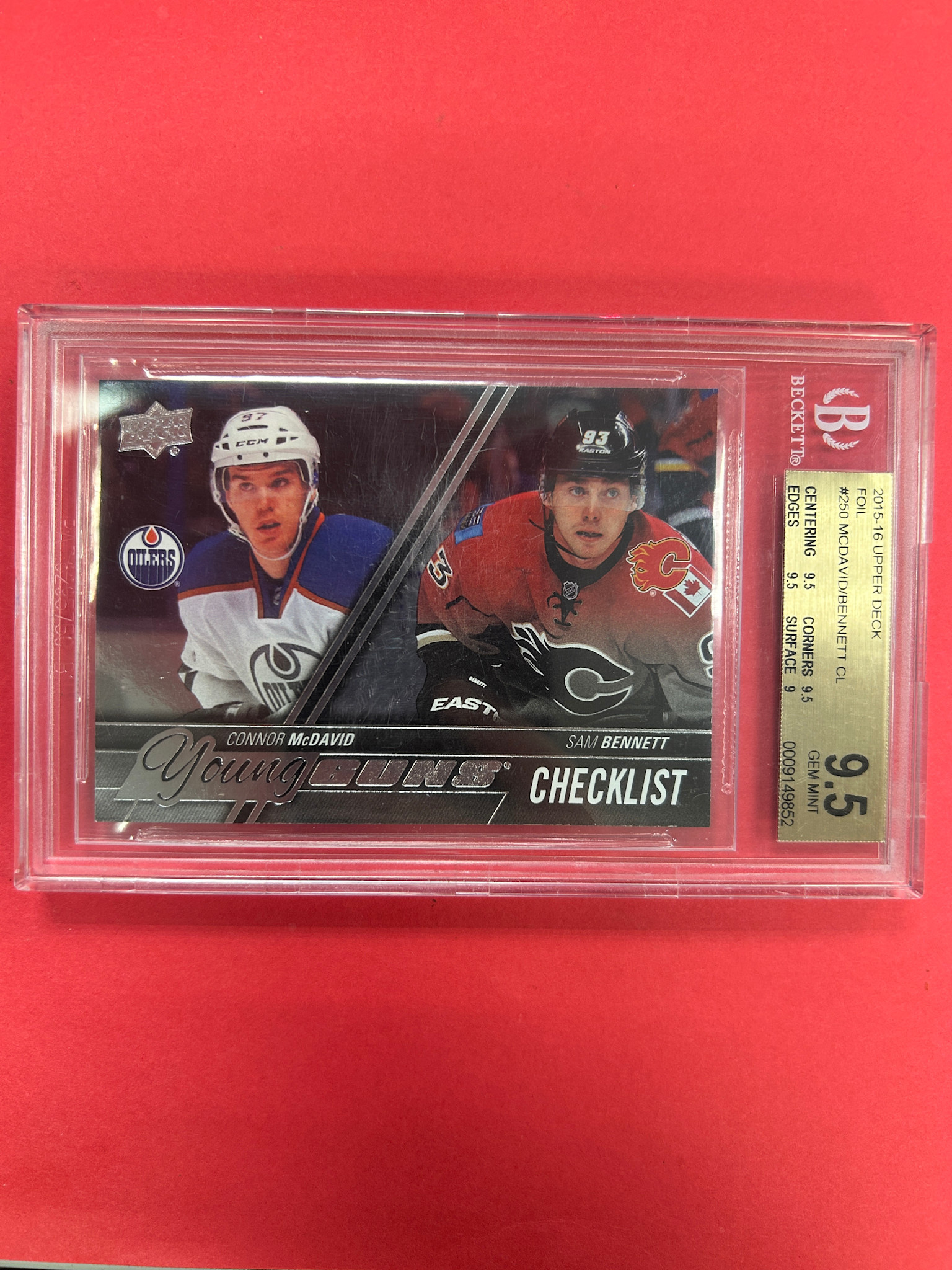 2015-16 UPPER DECK SERIES 1 MCDAVID / BENNETT CHECKLIST SILVER FOIL BECKETT GRADED 9.5