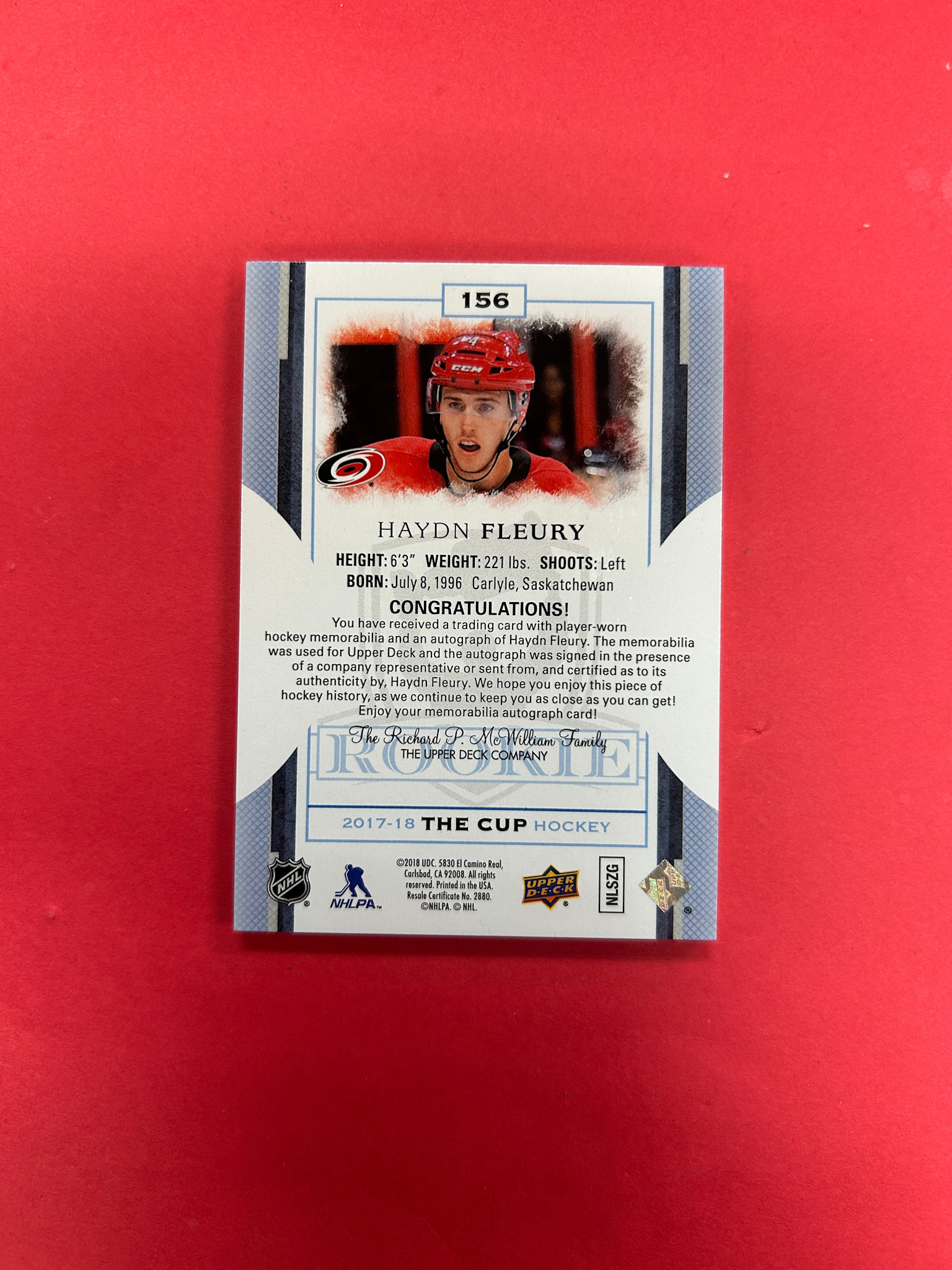 2017-18 UPPER DECK HAYDN FLEURY ROOKIE PATCH AUTO /249