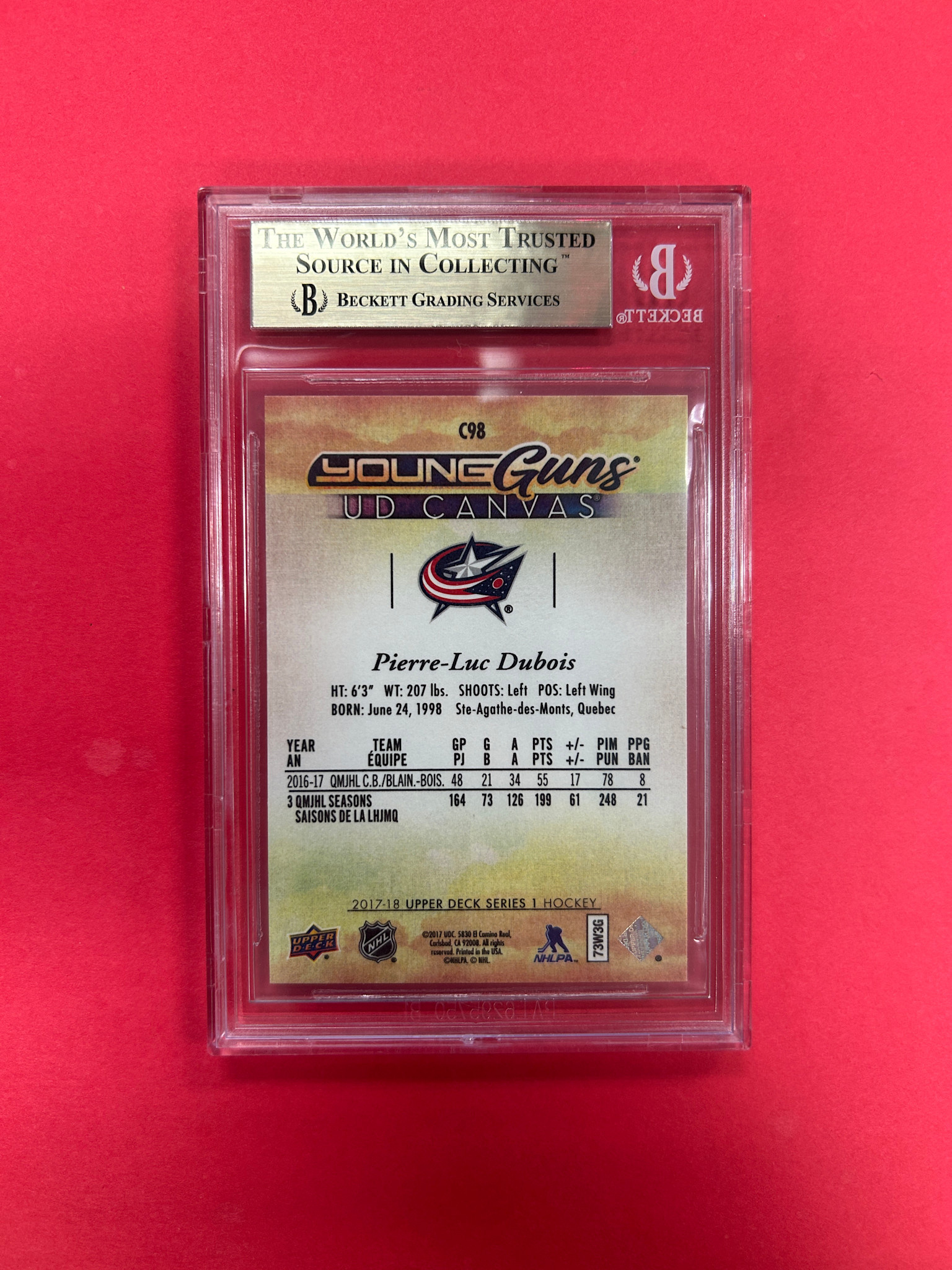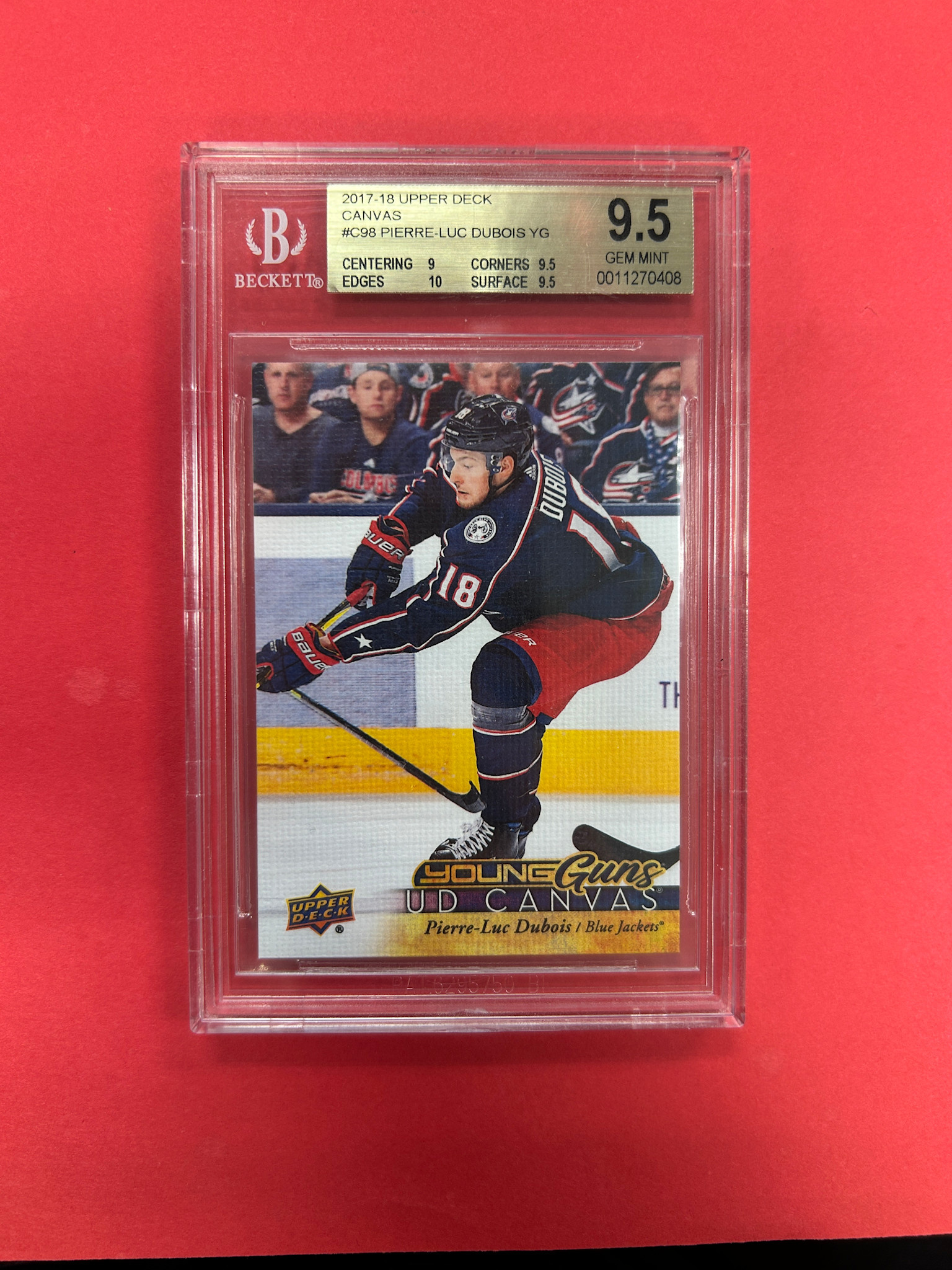 2017-18 UPPER DECK SERIES 1 PIERRE-LUC DUBOIS YOUNG GUNS CANVAS BECKETT GRADED 9.5