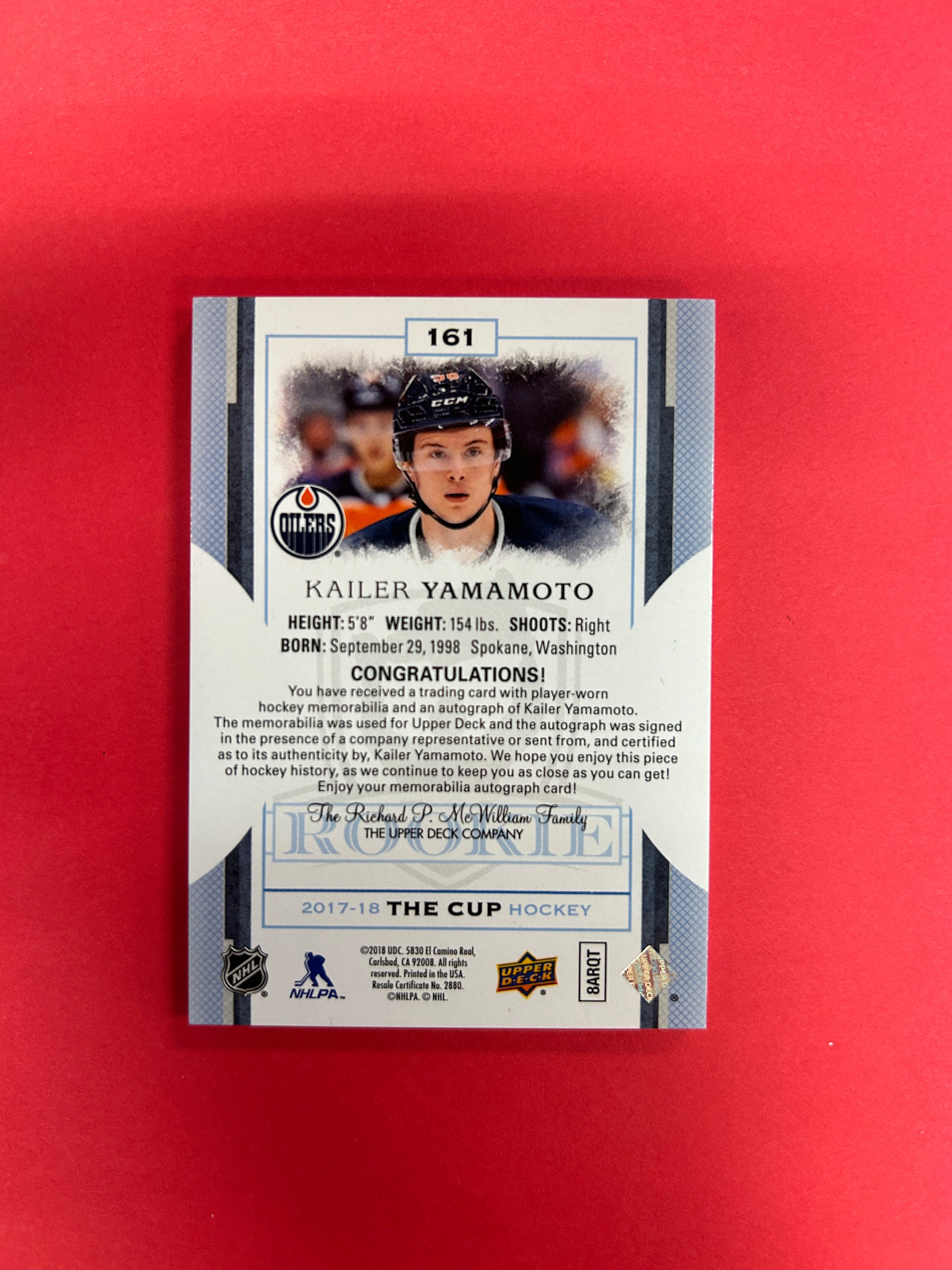2017-18 UPPER DECK THE CUP KAILER YAMAMOTO CUP ROOKIE PATCH AUTO /249