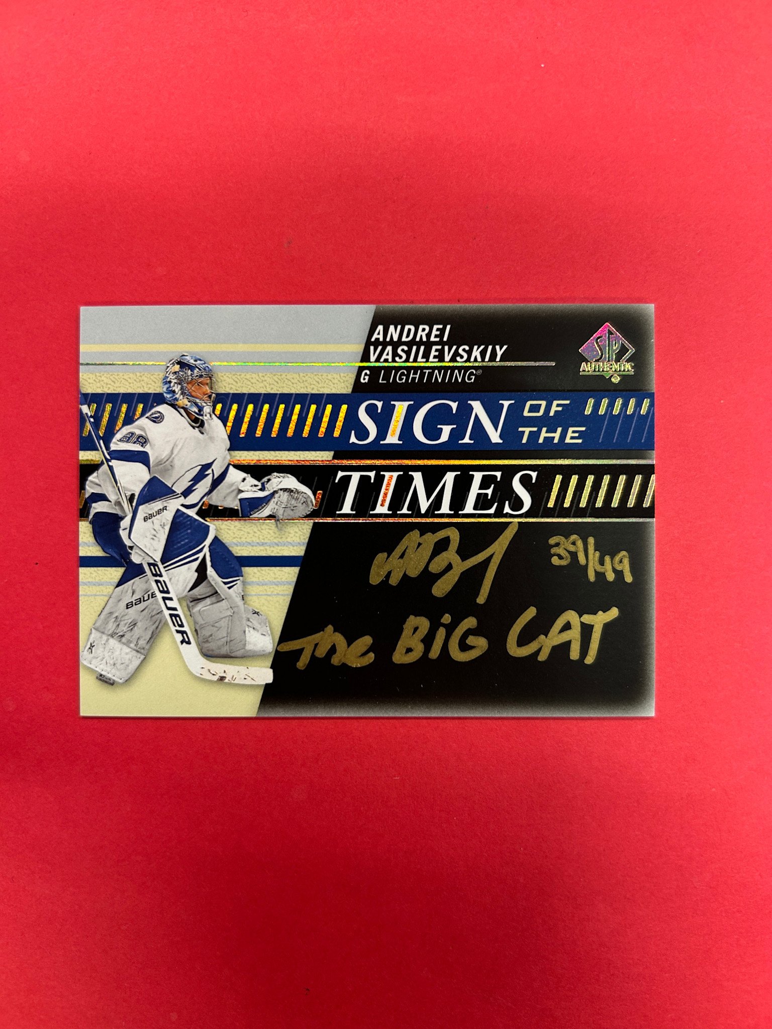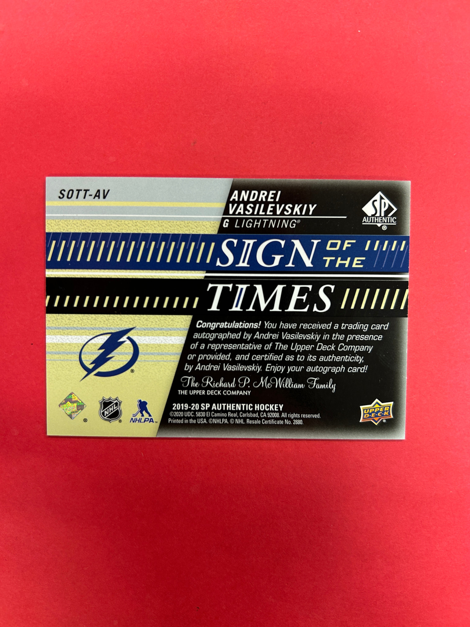 2019-20 SP AUTHENTIC ANDREI VASILEVSKIY SIGN OF THE TIMES BLACK INSCRIBED /49