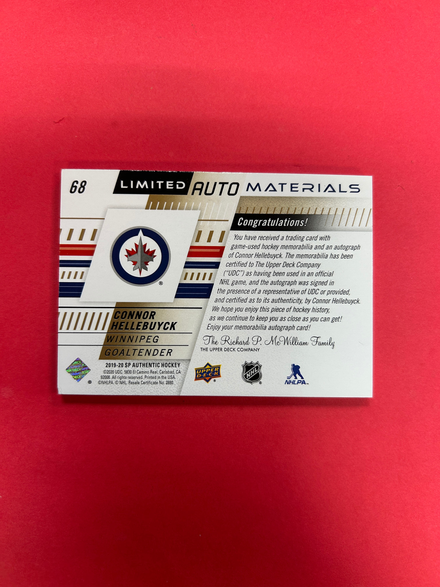 2019-20 SP AUTHENTIC CONNOR HELLEBUYCK LIMITED AUTO MATERIAL /100
