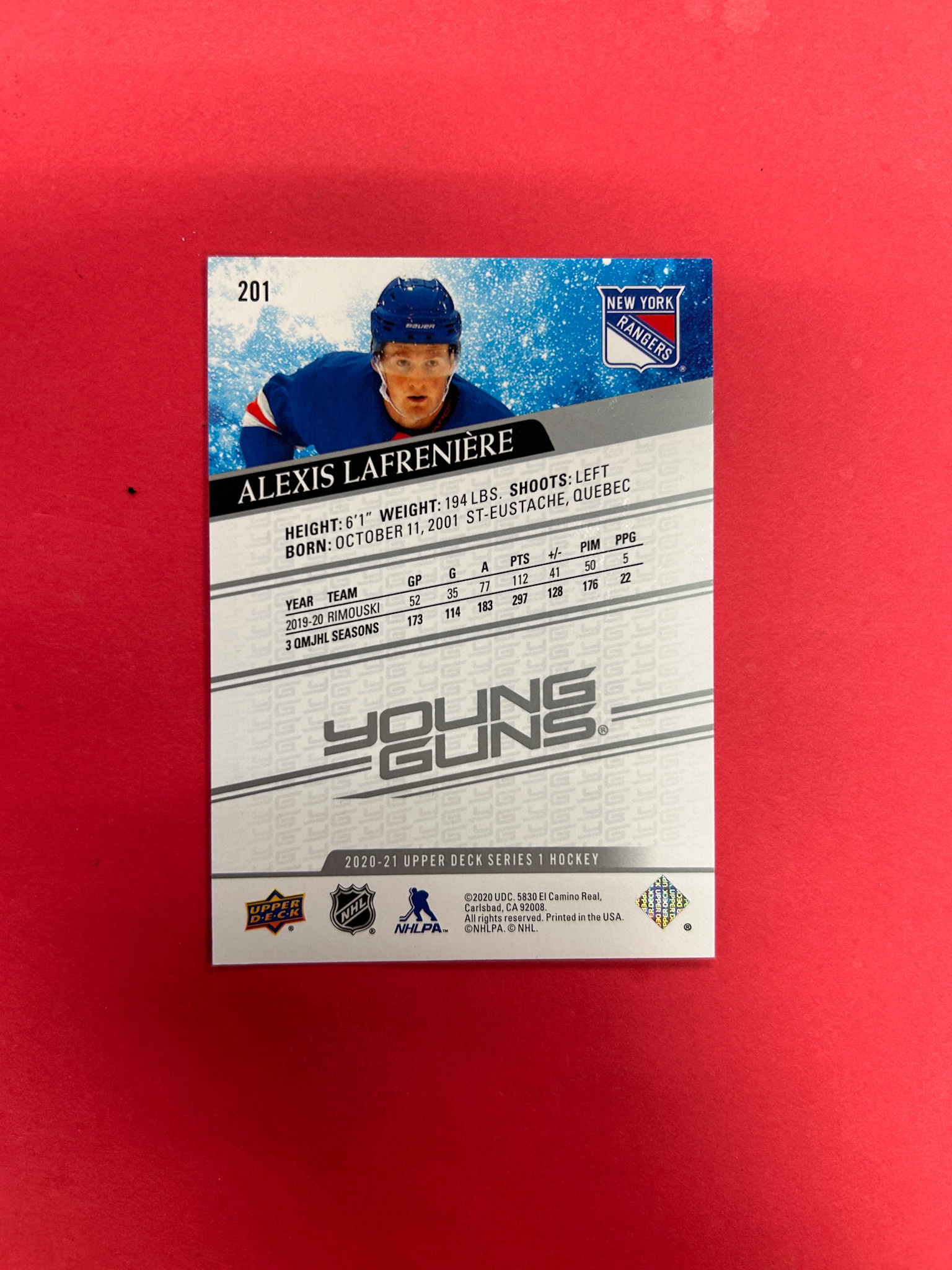 2020-21 UPPER DECK SERIES 1 ALEX LAFRENIERE YOUNG GUNS
