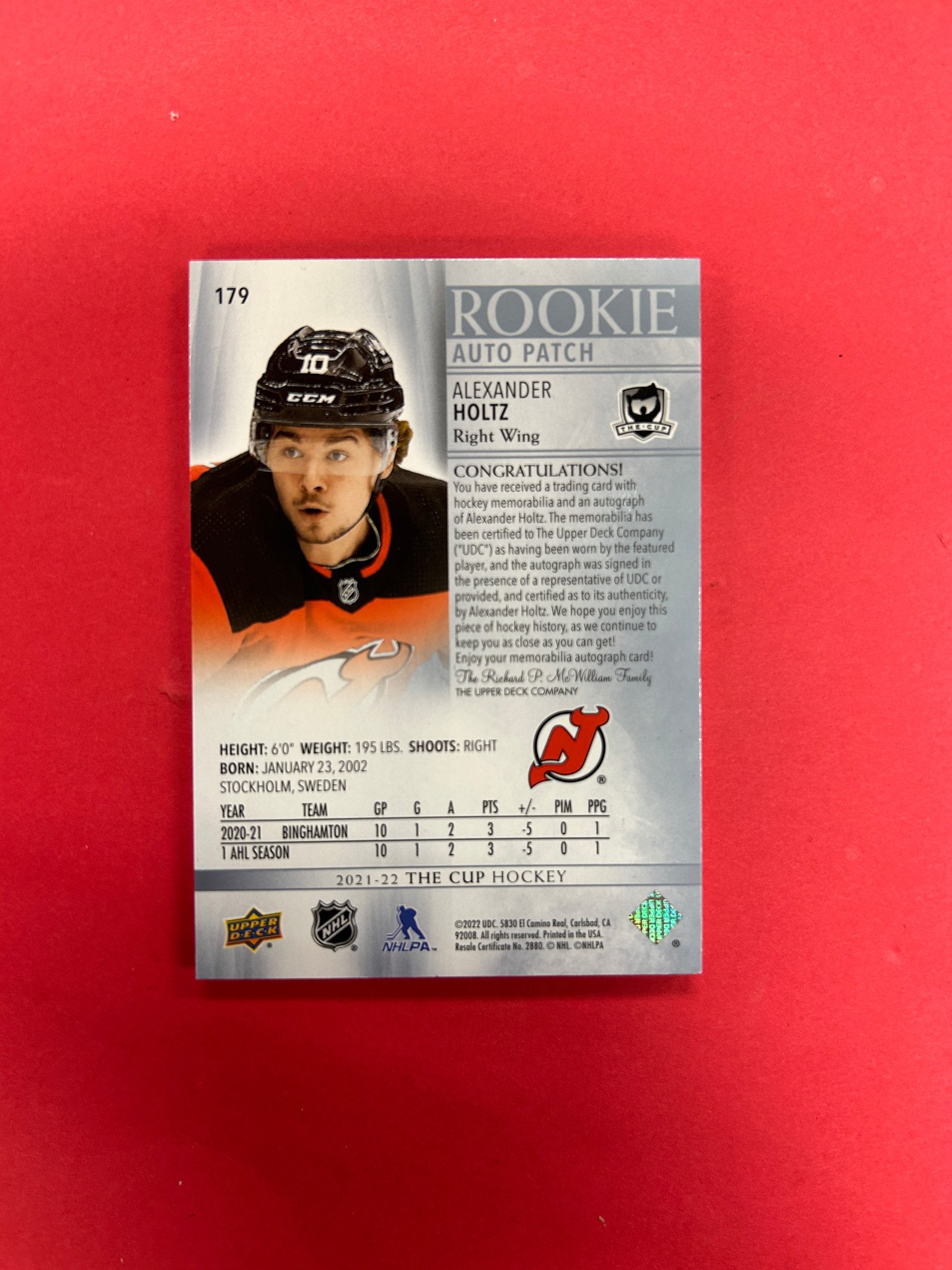 2021-22 UPPER DECK THE CUP ALEXANDER HOLTZ CUP ROOKIE PATCH AUTO /249