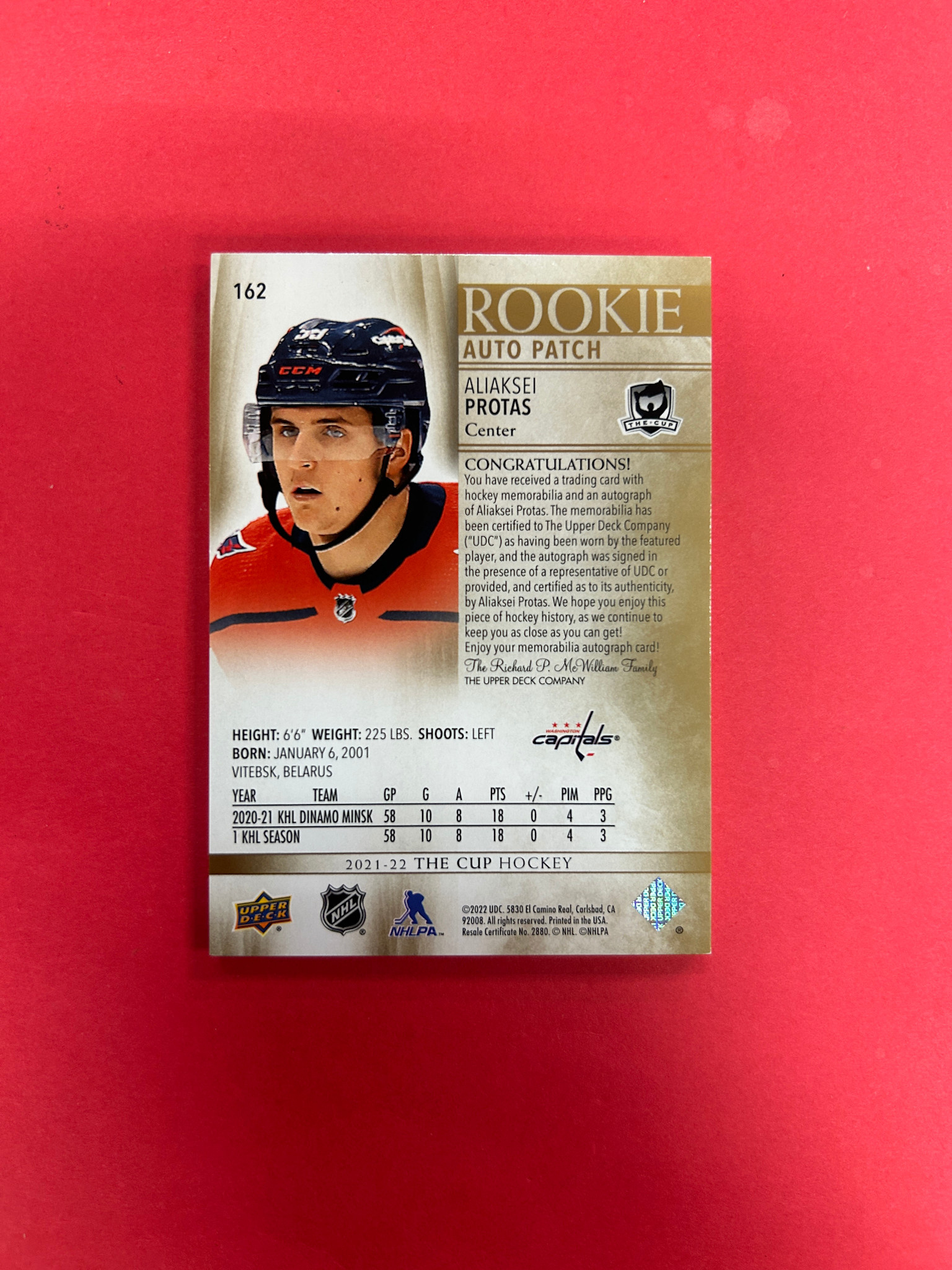 2021-22 UPPER DECK THE CUP ALIASKEI PROTAS ROOKIE AUTO PATCH GOLD /24