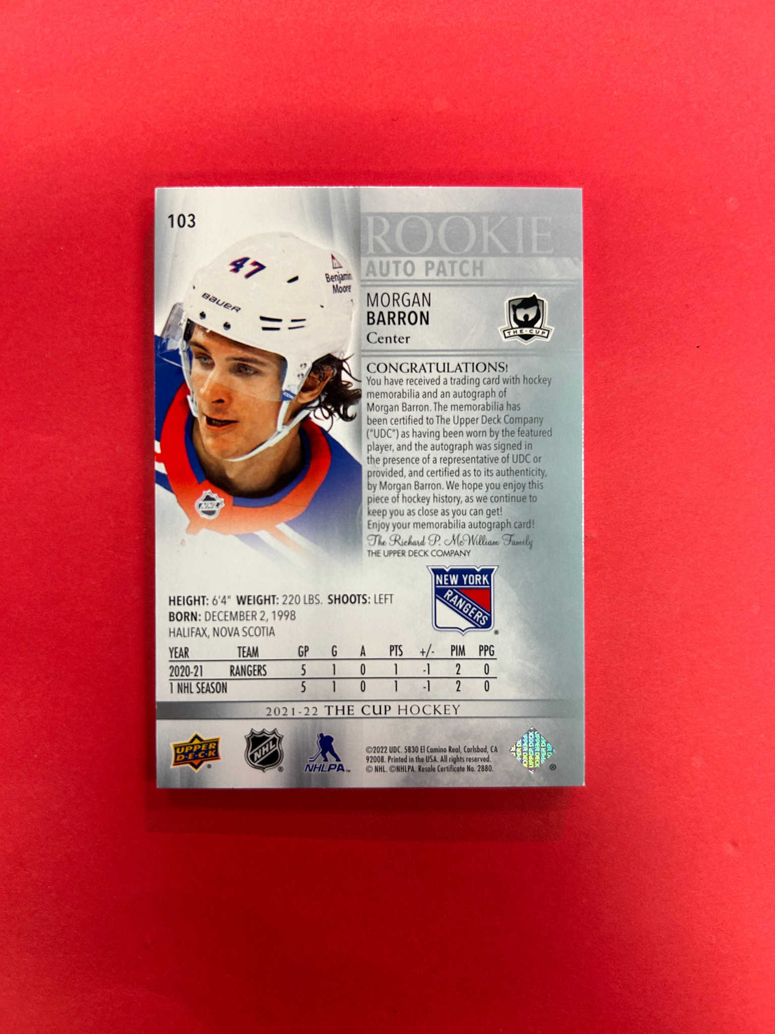 2021-22 UPPER DECK THE CUP MORGAN BARRON CUP ROOKIE PATH AUTO /249
