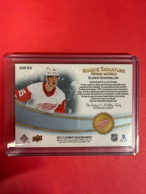 This is it! 2022-23 ULTIMATE ROOKIUE SIGNATURE PREMIUM MATERIALS ELMER SODERBLOM 54/65 #RSP-ES