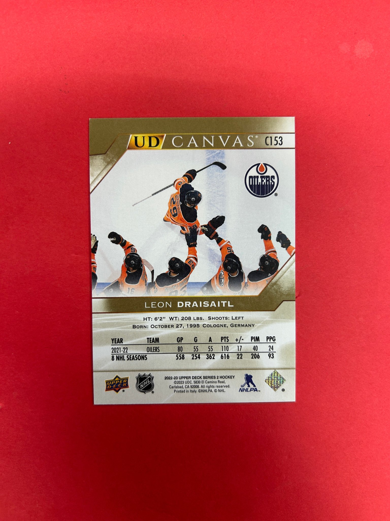 2022-23 UPPER DECK LEON DRAISAITL IN PERSON AUTOGRAPH CANVAS