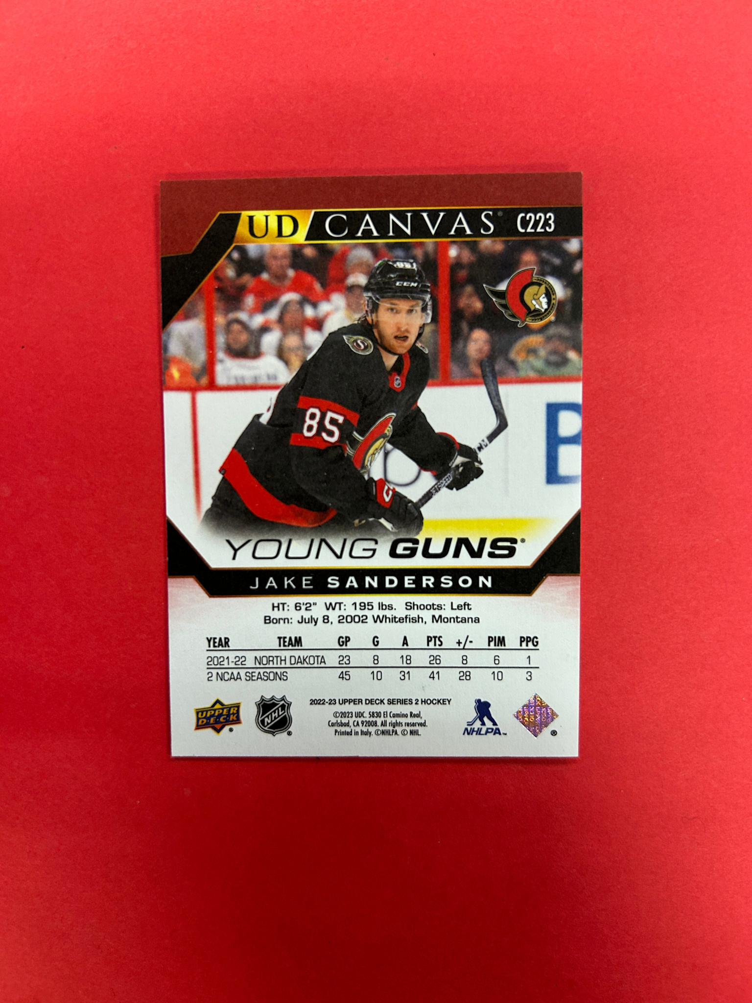 2022-23 UPPER DECK SERIES 2 JAKE SANDERSON YOUNG GUNS CANVAS AUTOGRAPHED IN PERSON