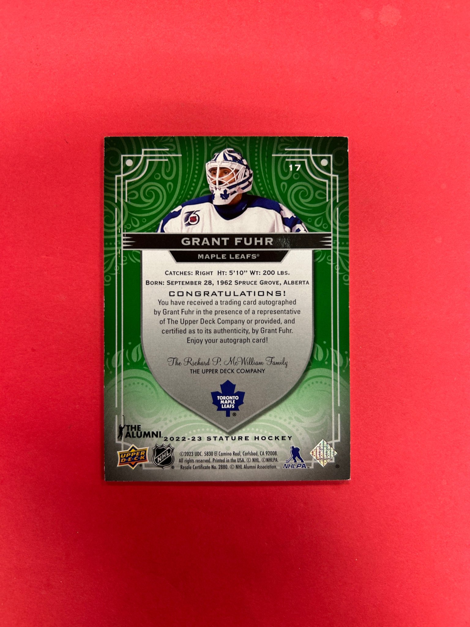 2022-23 UPPER DECK STATURE GRANT FUHR AUTOGRAPH GREEN /10