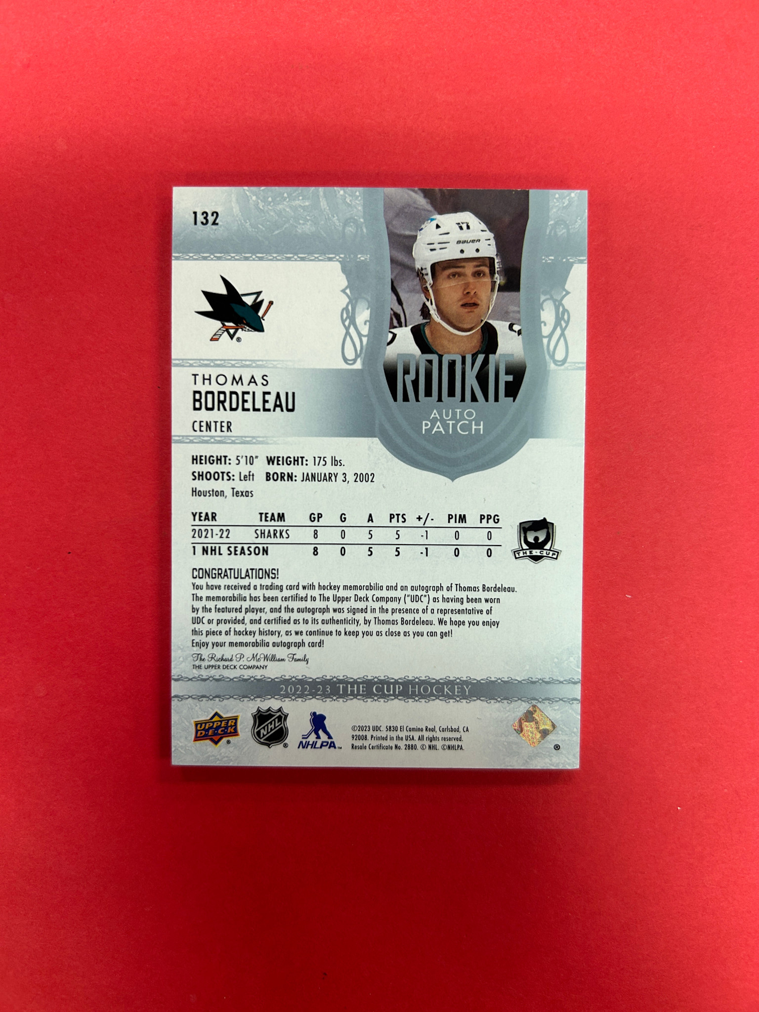 2022-23 UPPER DECK THE CUP THOMAS BORDELEAU ROOKIE PATCH AUTO /249 INSANE PATCH