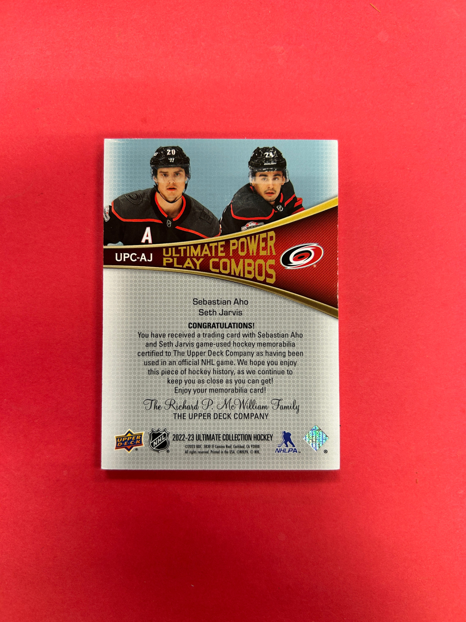 2022-23 UPPER DECK ULTIMATE POWER COMBOS JARVIS / AHO DUAL PATCH /20
