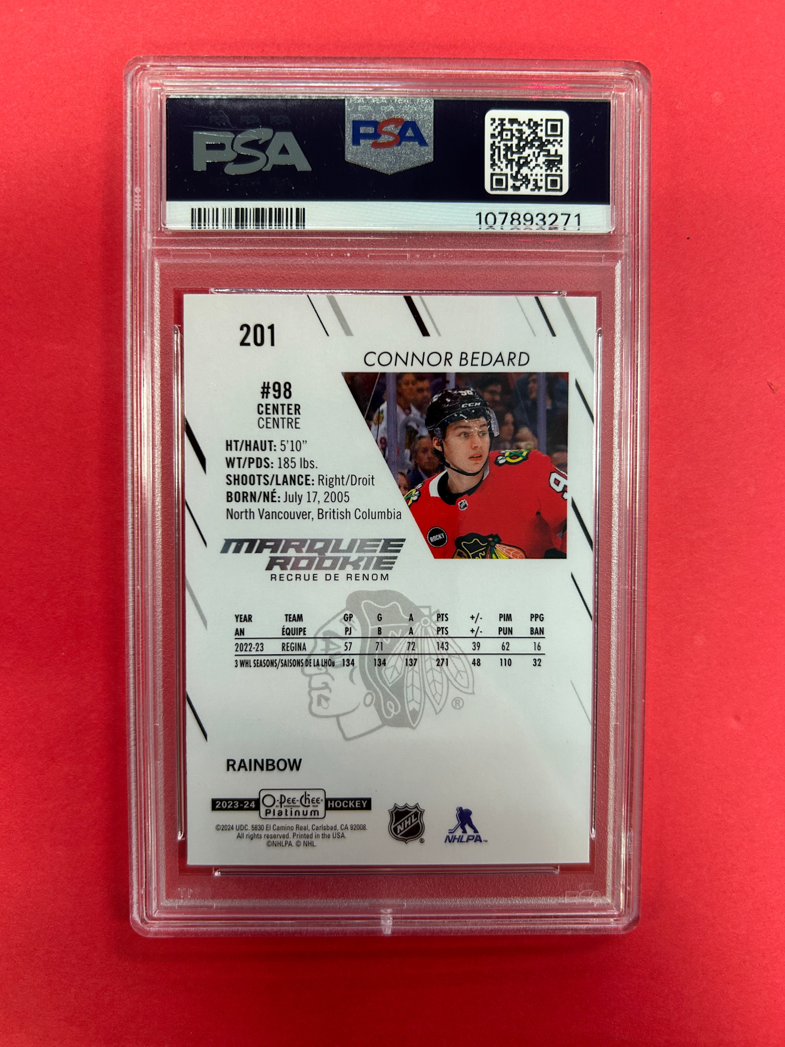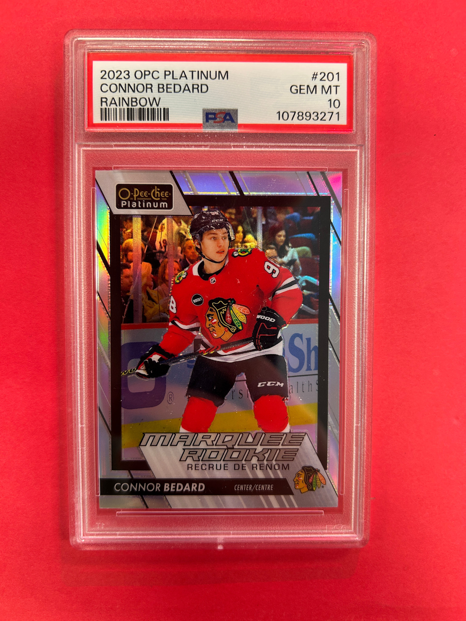 2023-24 OPC PLATINUM CONNOR BEDARD MARQUEE ROOKIE RAINBOW PSA GRADED 10