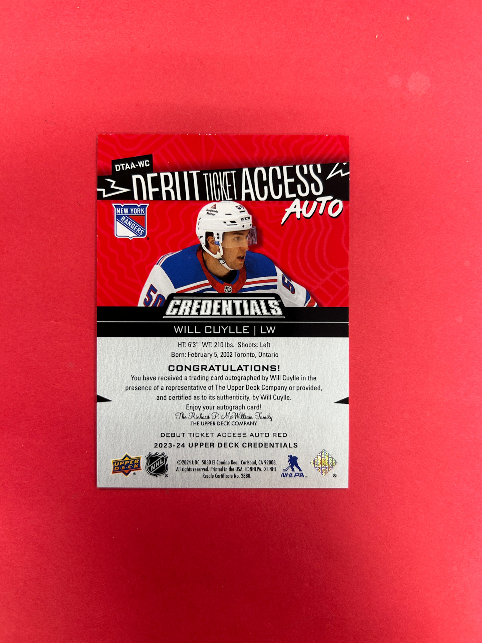 2023-24 UPPER DECK CREDENTIALS WILL CUYLLE DEBUT TICKET ACCESS AUTO /99