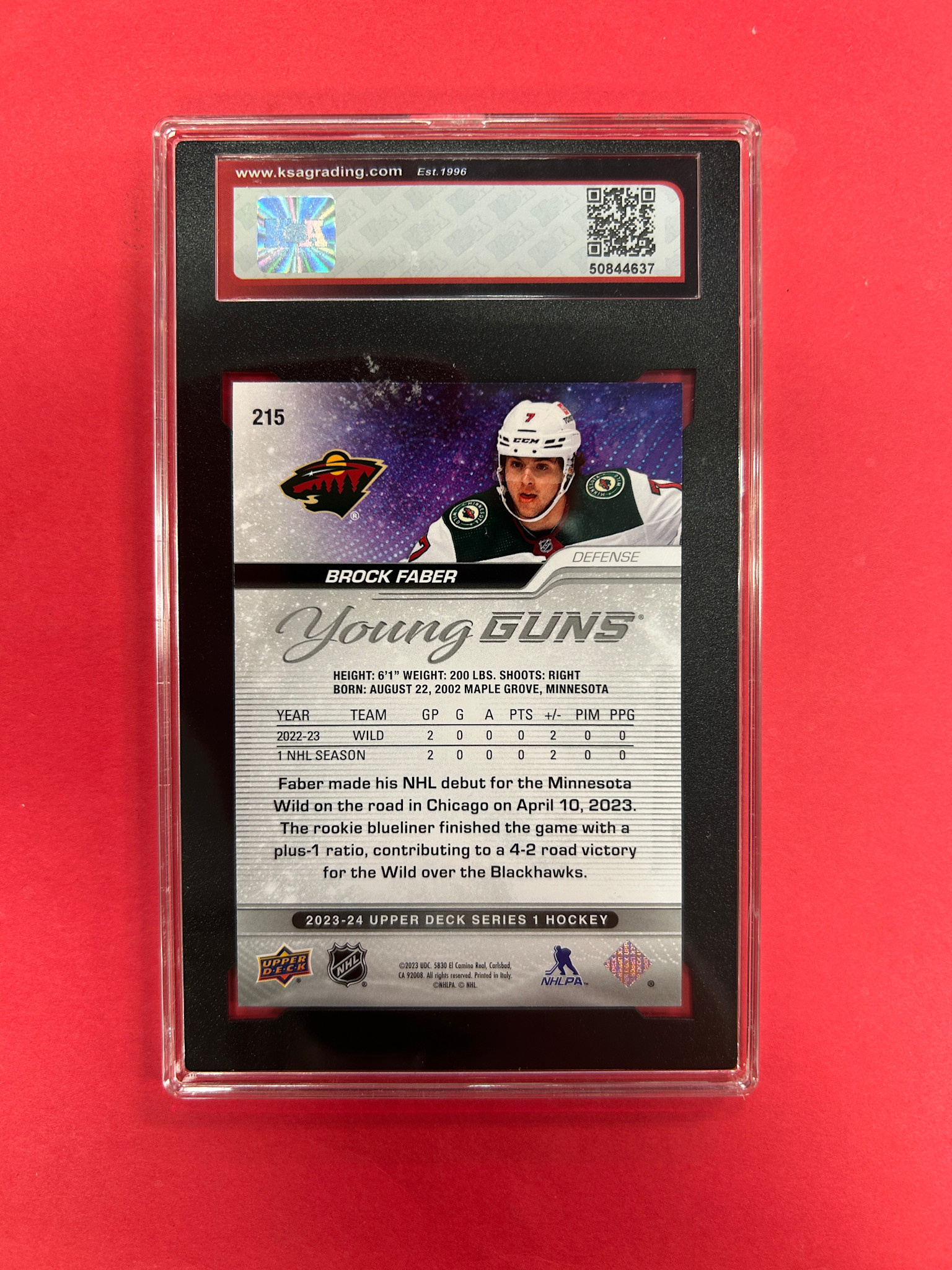 2023-24 UPPER DECK SERIES 1 BROCK FABER YOUNG GUNS OUTBURST KSA GRADED 10
