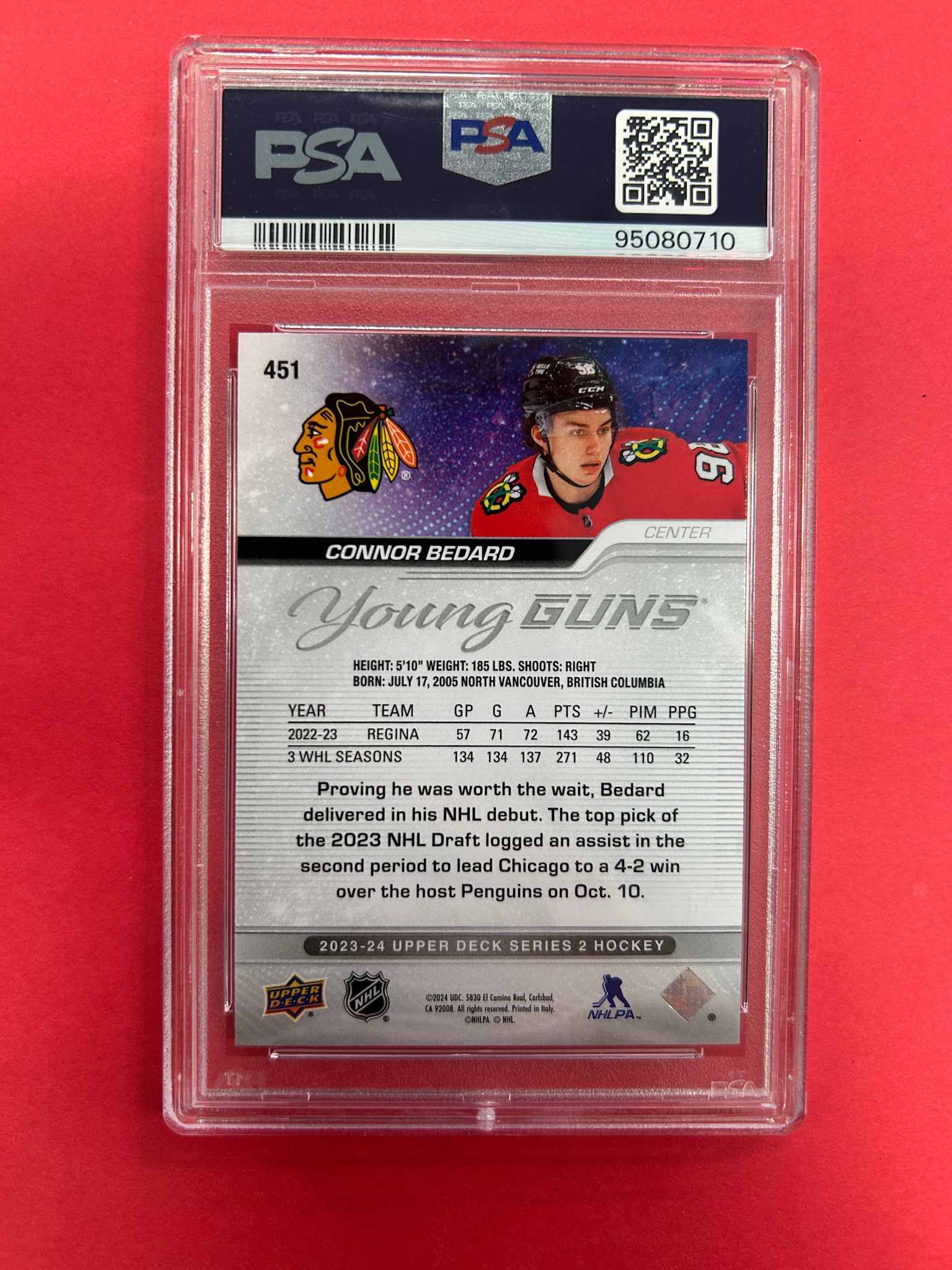 2023-24 UPPER DECK SERIES 2 CONNOR BEDARD YOUNG GUNS PSA GRADED 10