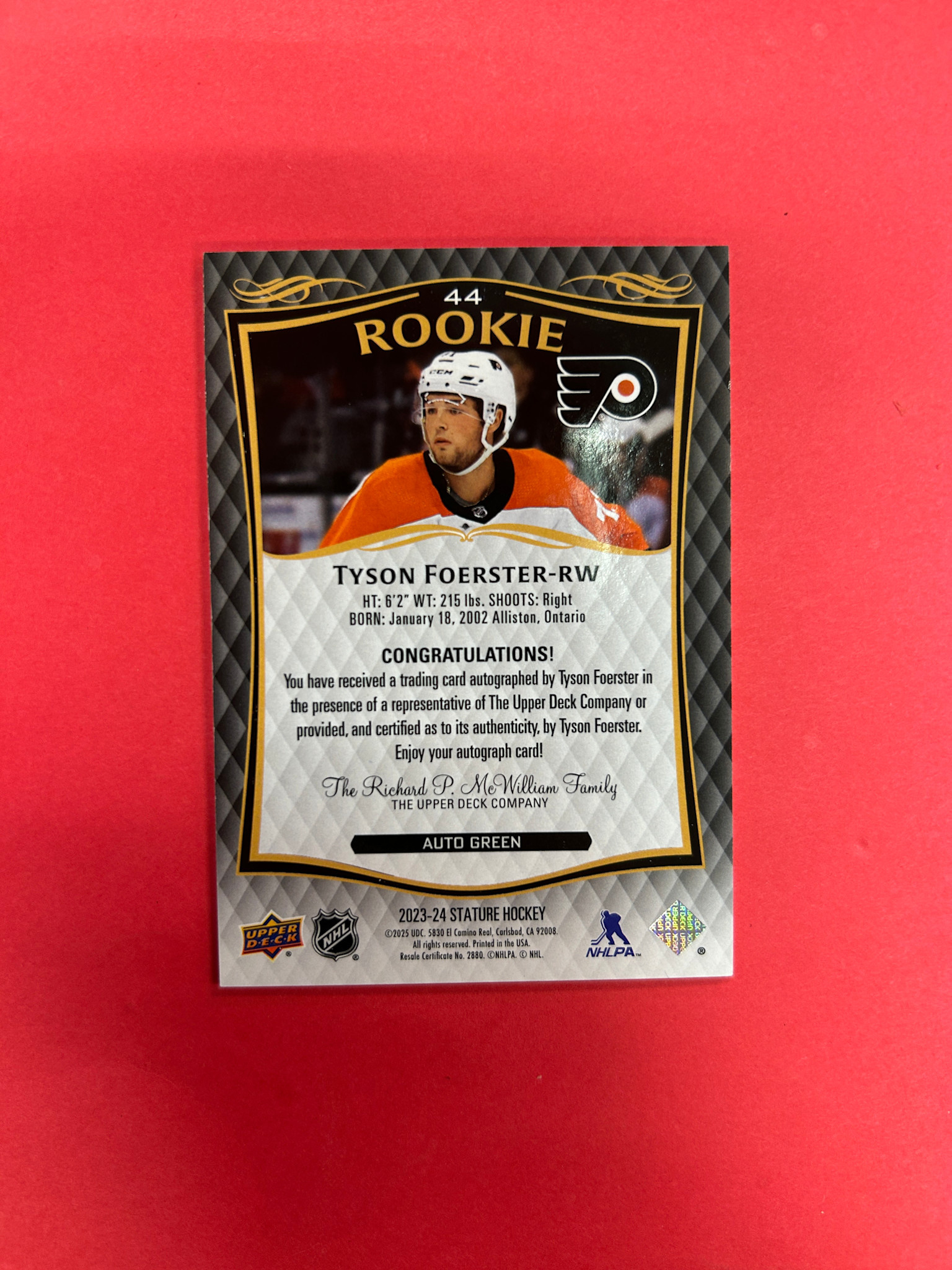 2023-24 UPPER DECK STATURE TYSON FOERSTER GREEN AUTO ROOKIE /199