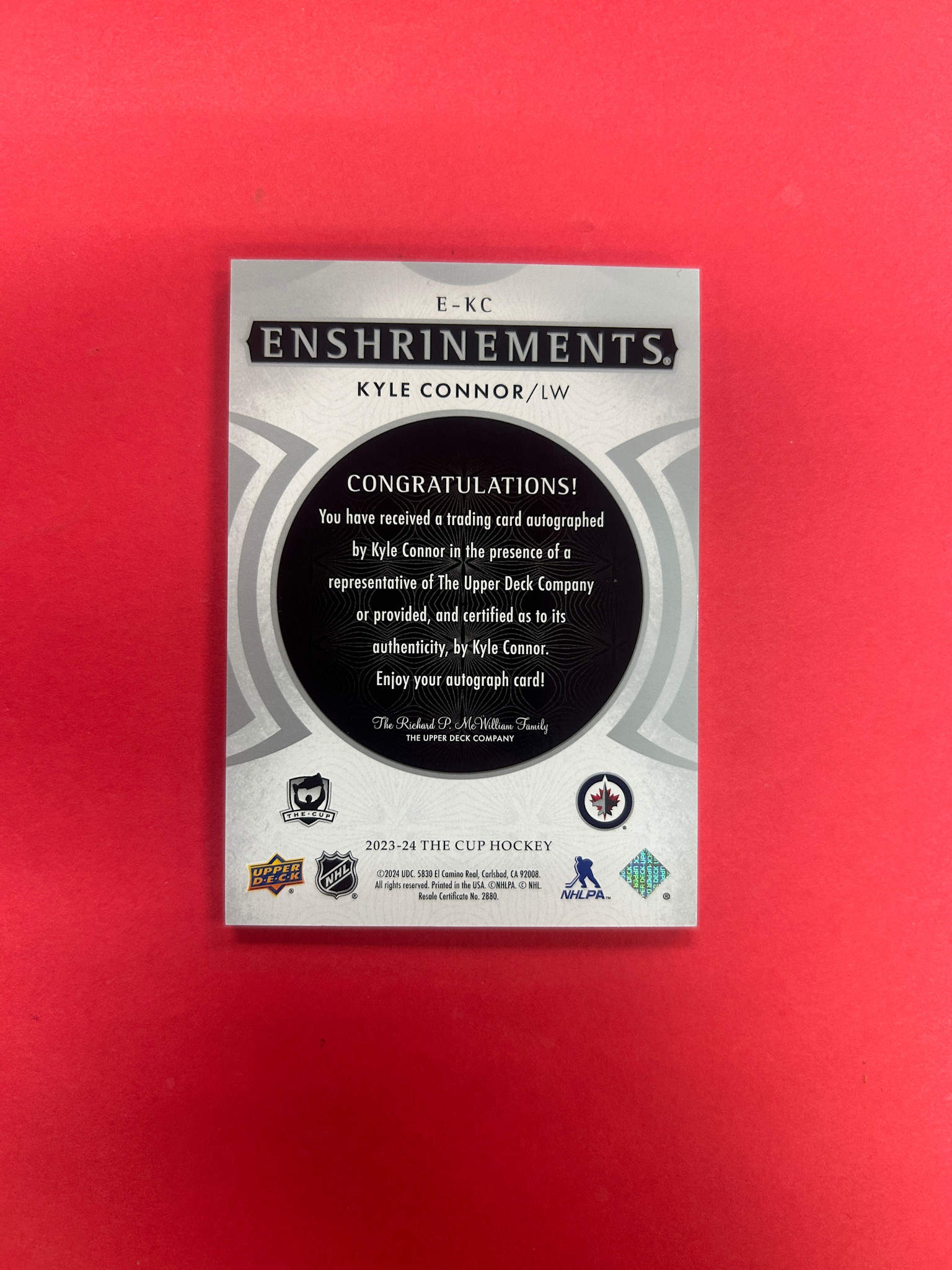 2023-24 UPPER DECK THE CUP KYLE CONNOR ENSHRINMENTS AUTO /99