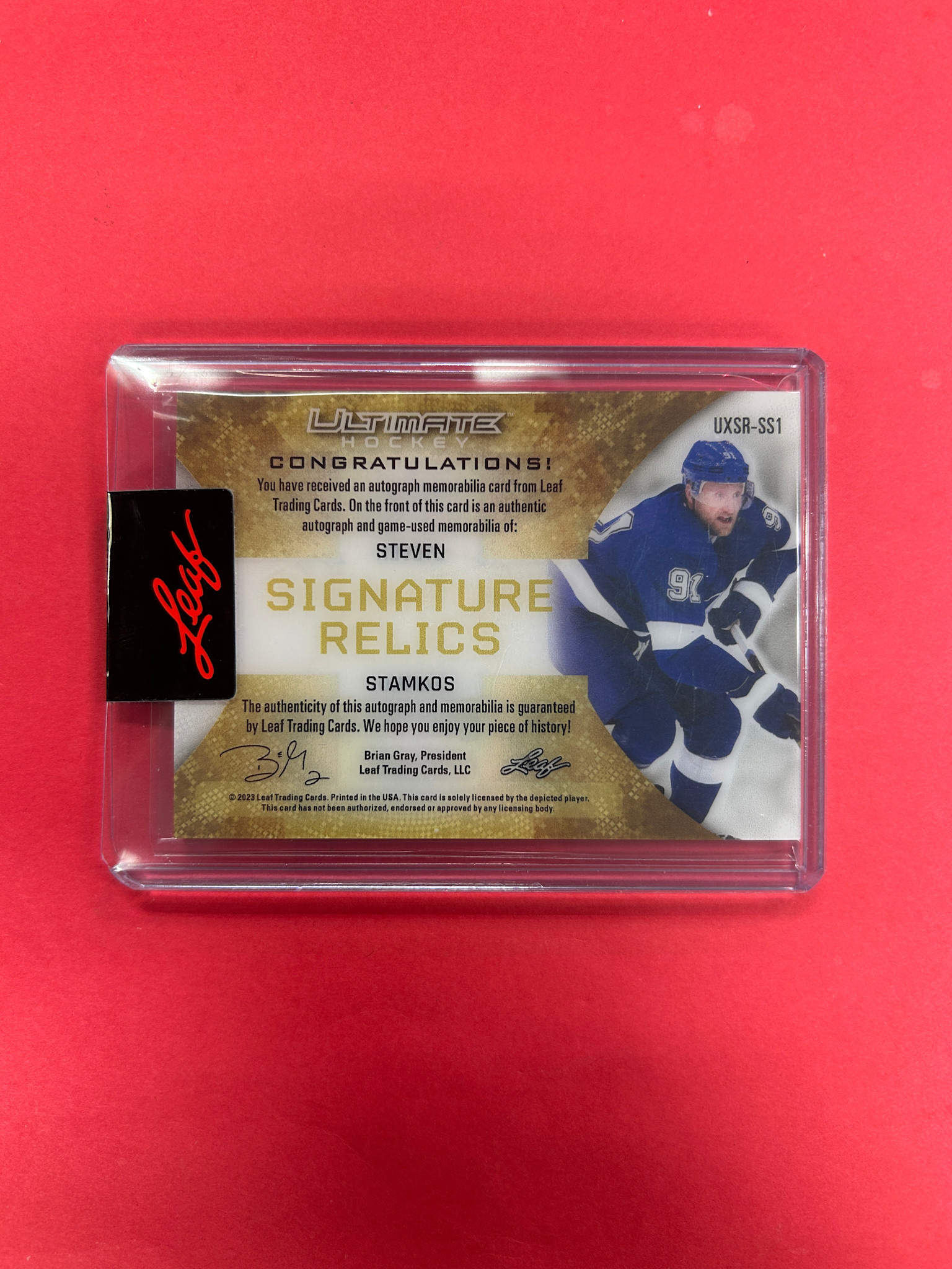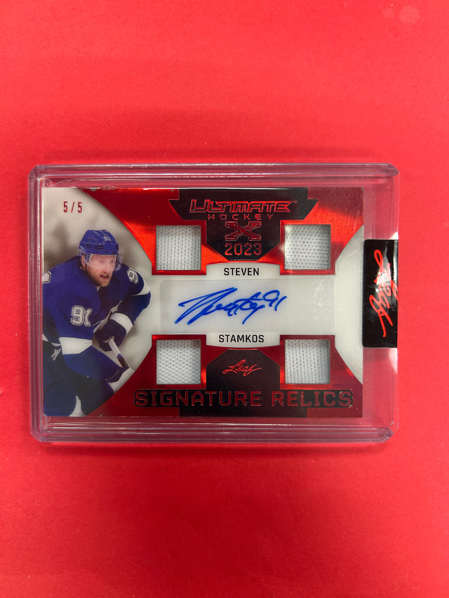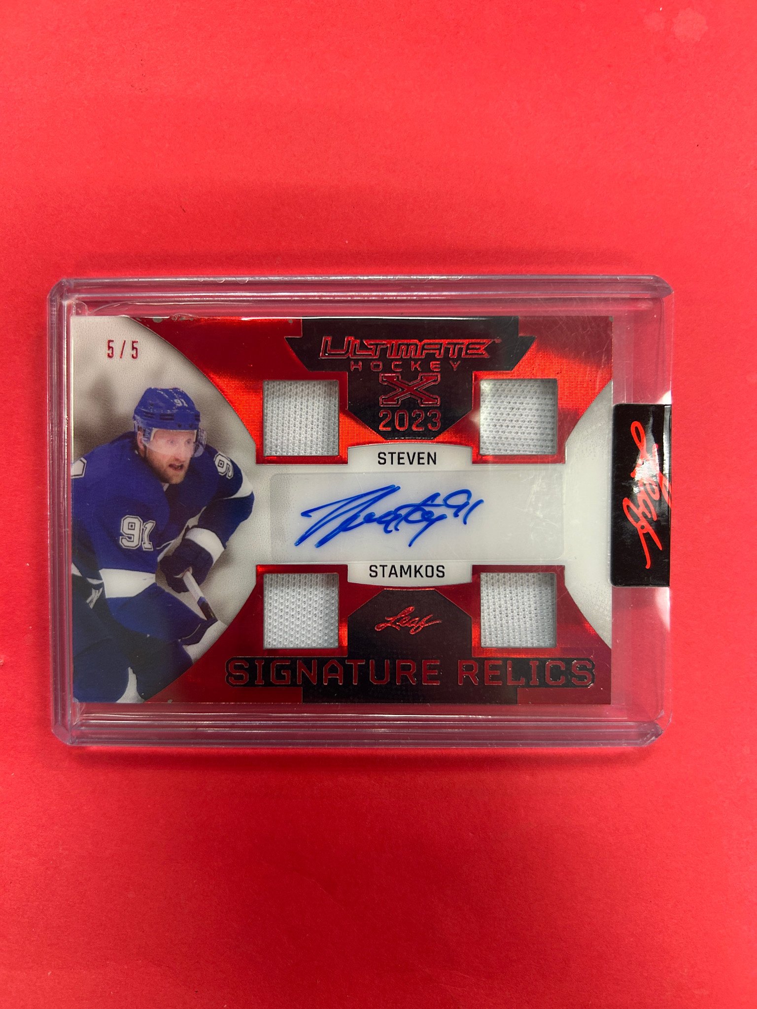 2023 LEAF ULTIMATE HOCKEY STEVEN STAMKOS SIGNATURE RELICS RUBY /5
