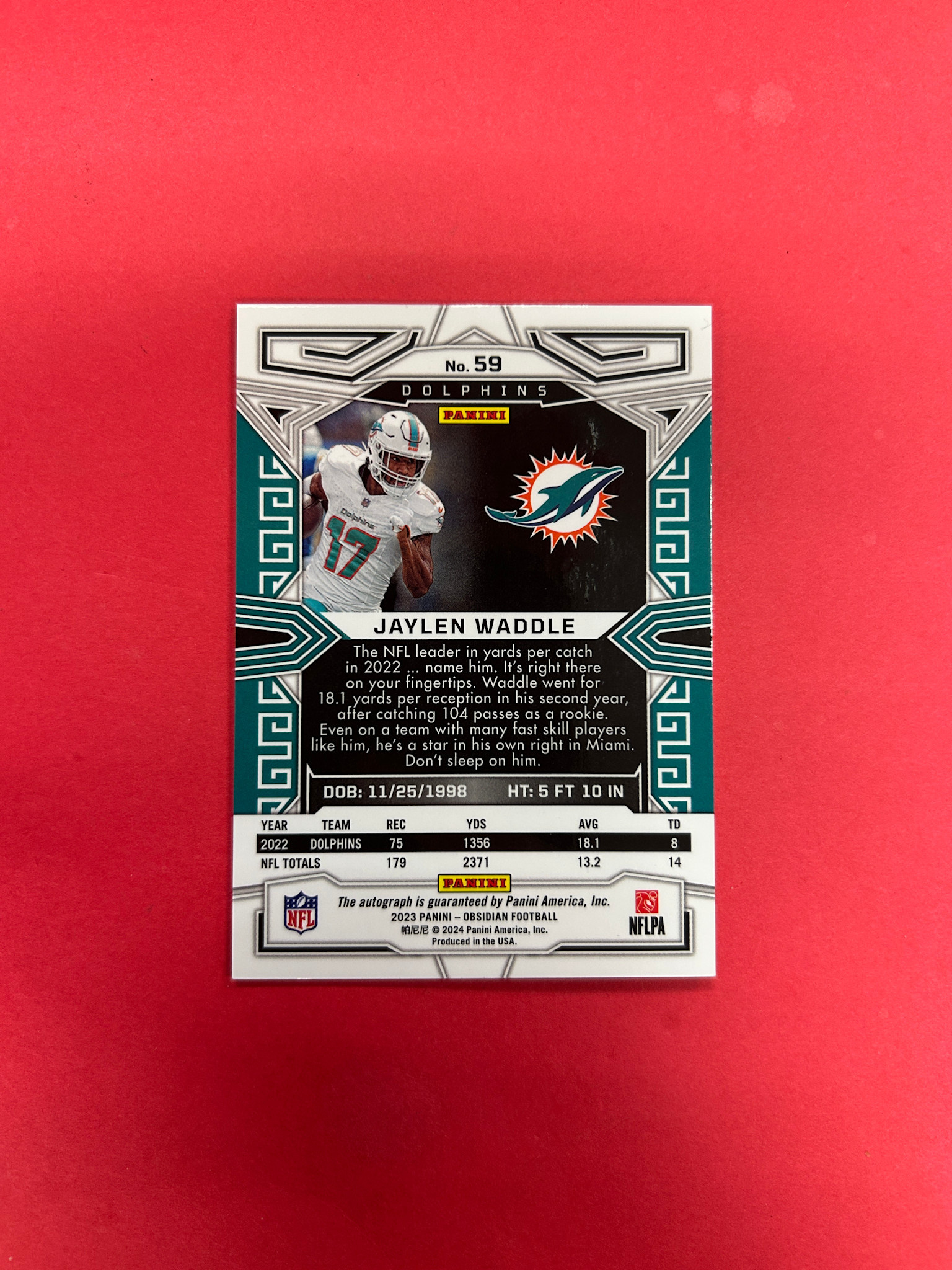 2023 PANINI OBSIDIAN FOOTBALL JAYLEN WADDLE OBSIDIAN AUTOGRAPHS