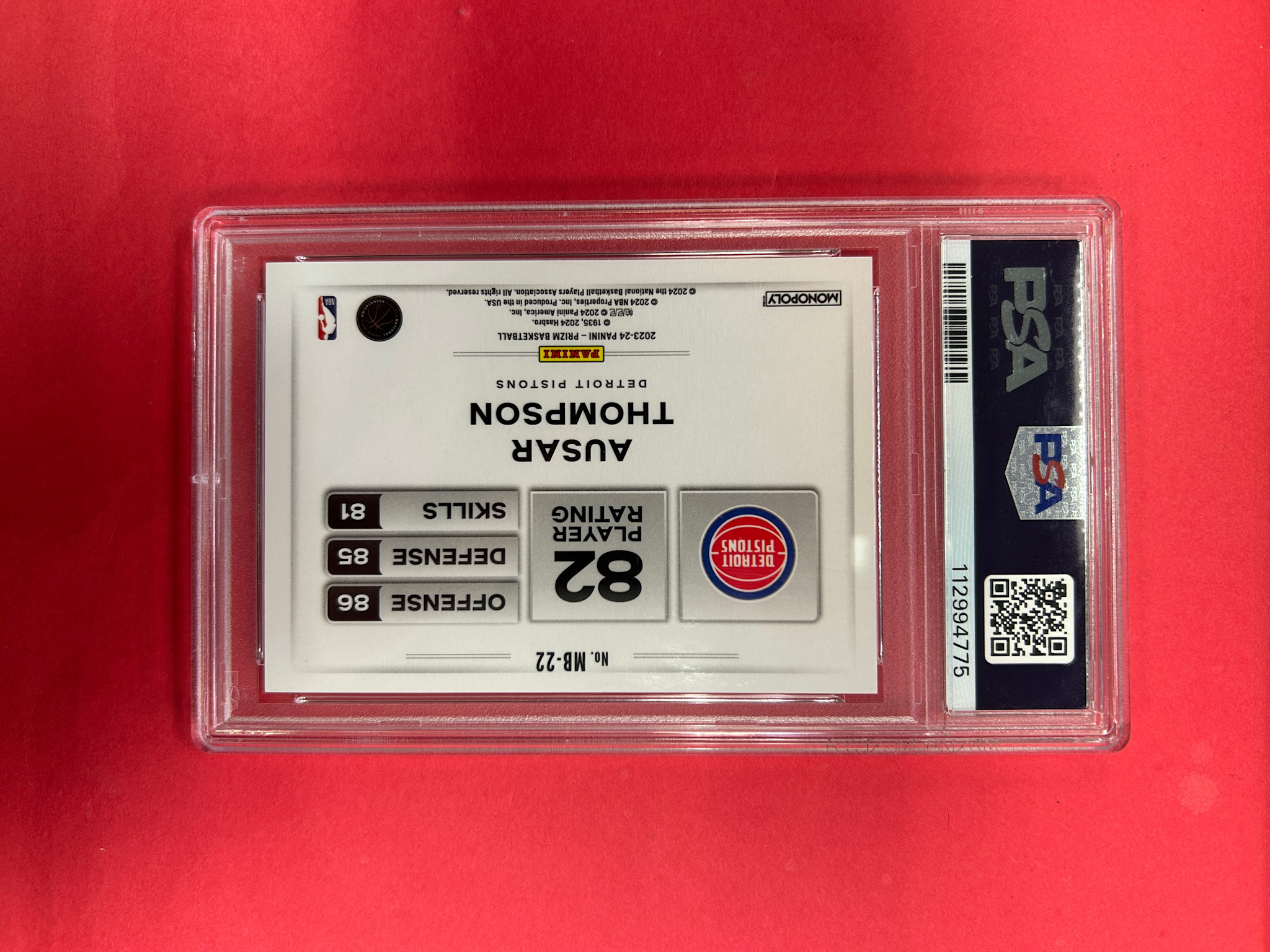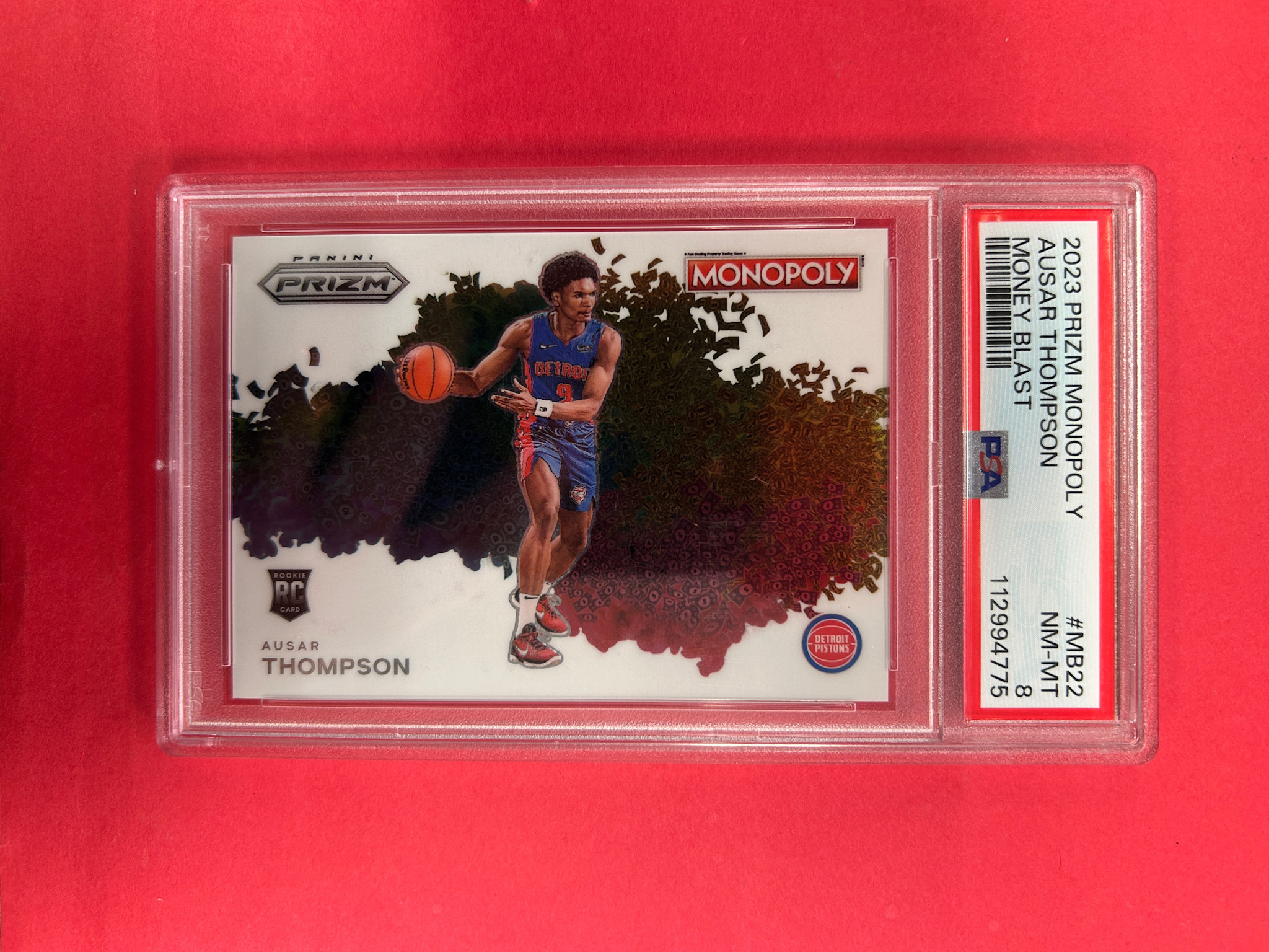 2023 PANINI PRIZM MONOPOLY AUSAR THOMPSON MONEY BLAST SP PSA GRADED 8