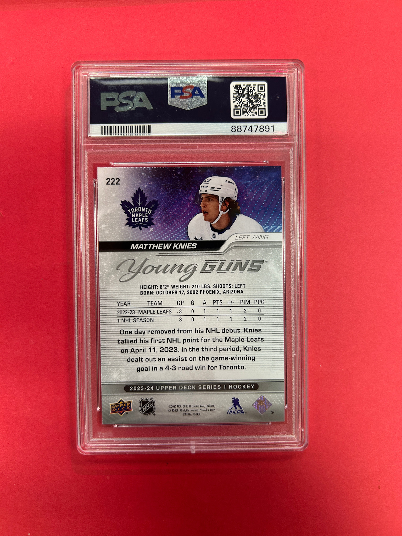 2023 UPPER DECK SERIES 1 MATTHEW KNIES YOUNG GUNS OUTBURST PSA GRADED 9