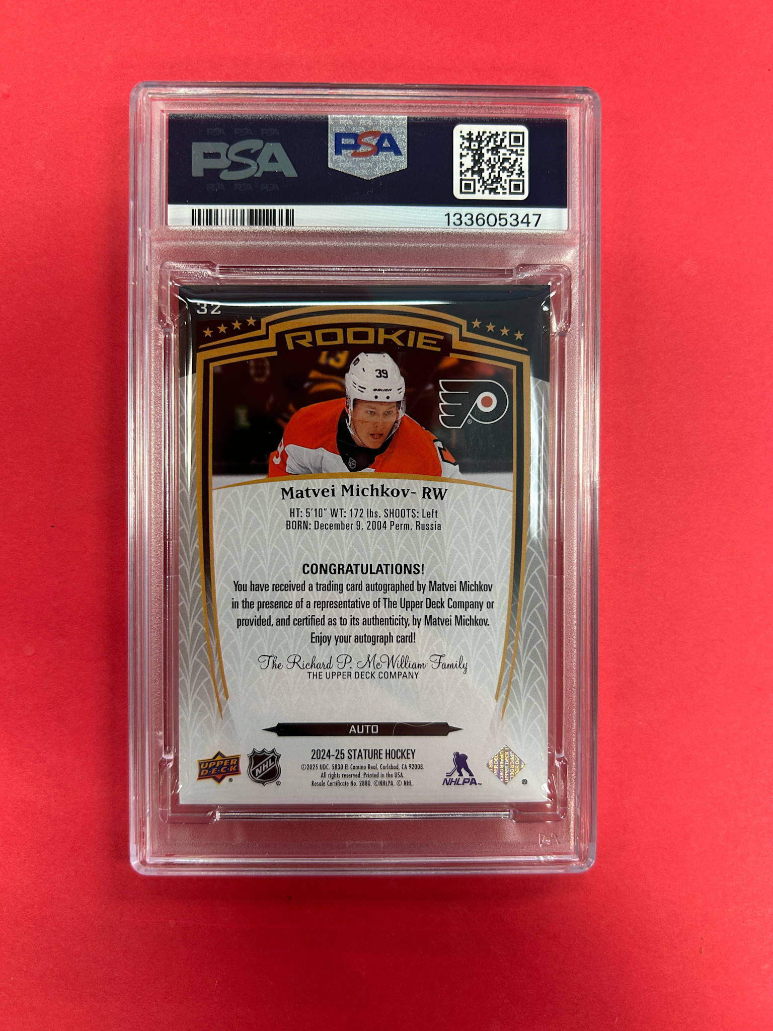 2024-25 UPPER DECK STATURE MATVEI MICHKOV AUTOGRAPH PSA GRADED 8