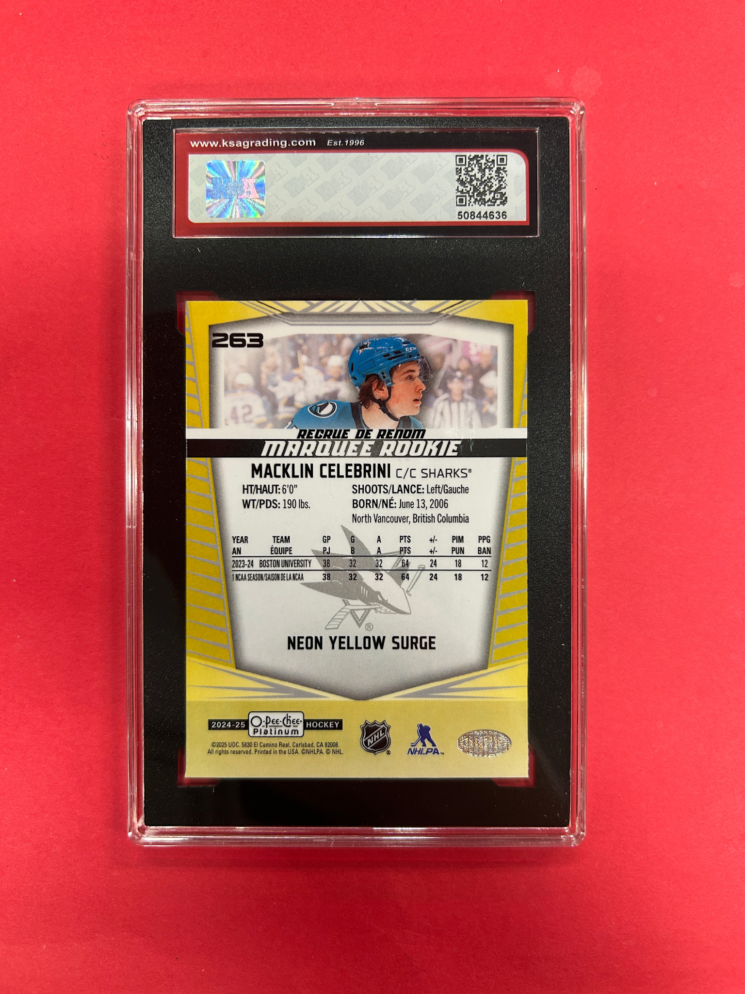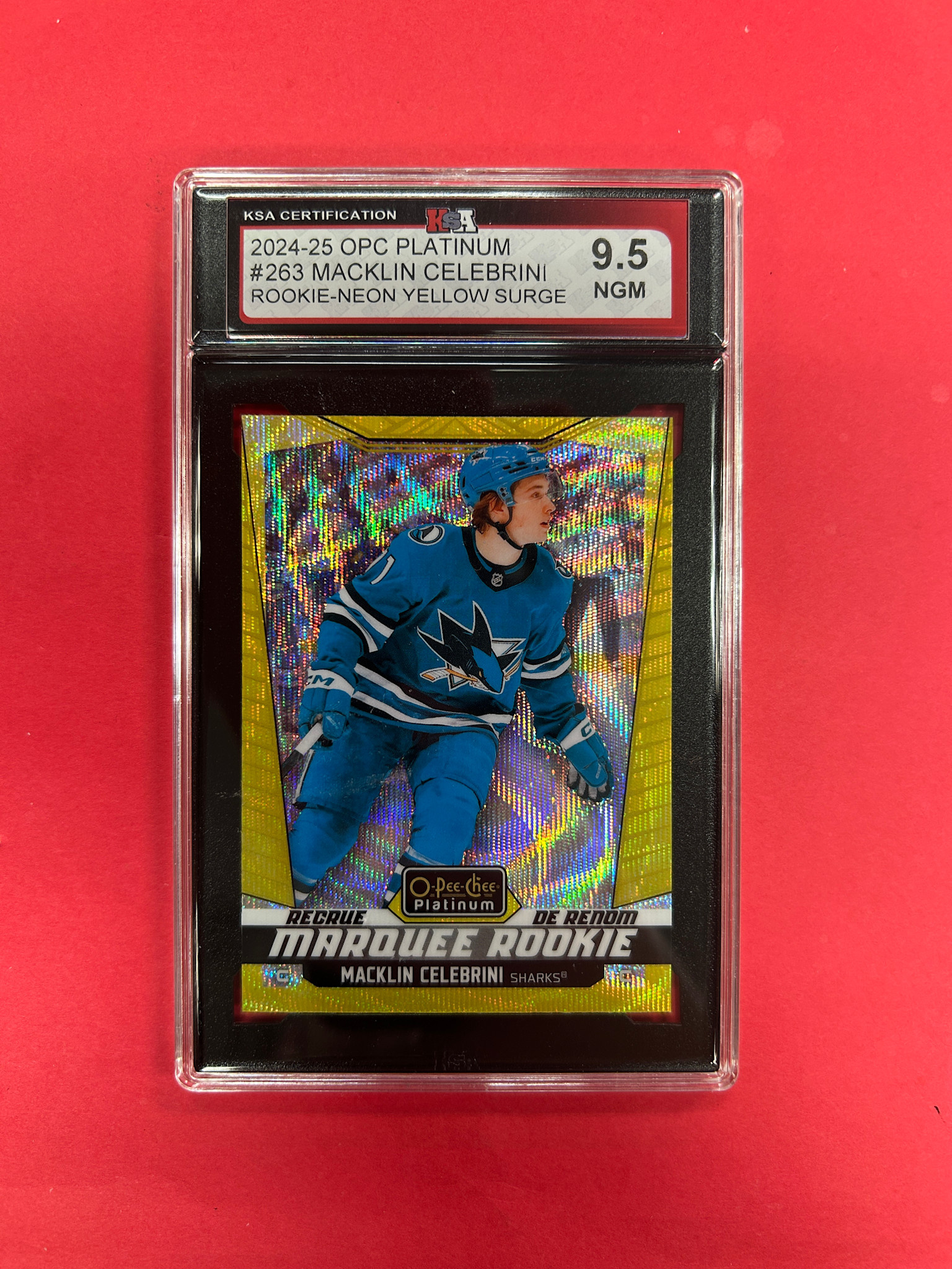 2024-25 OPC PLATINUM MACKLIN CELEBRINI NEON YELLOW SURGE ROOKIE KSA GRADED 9.5