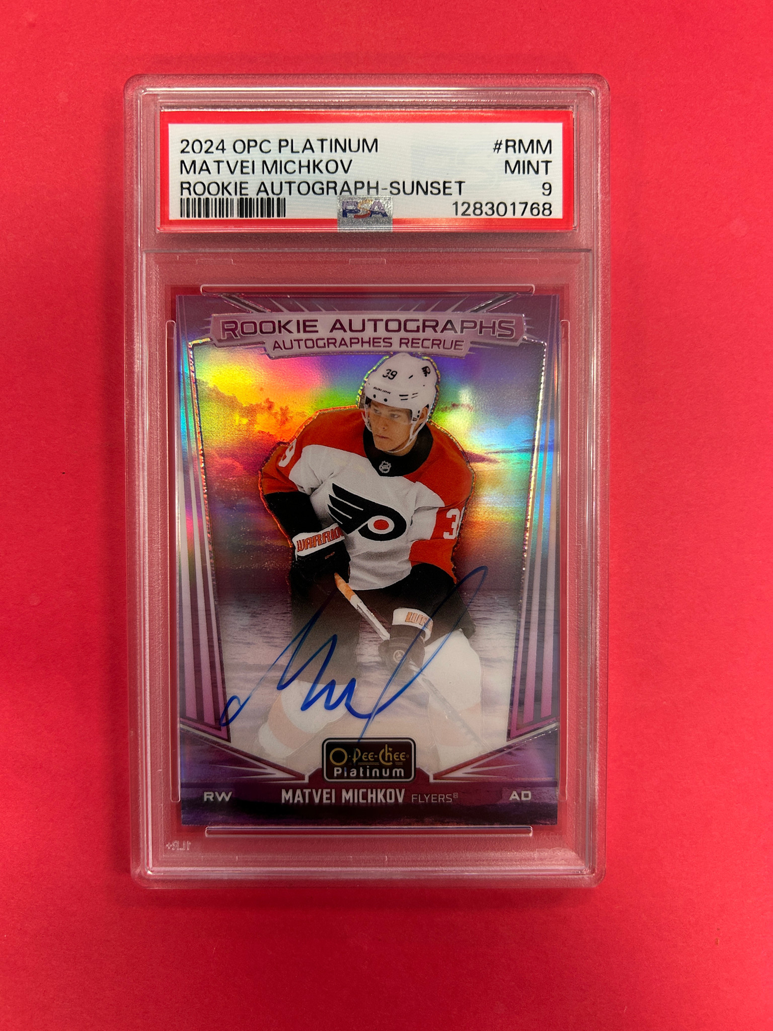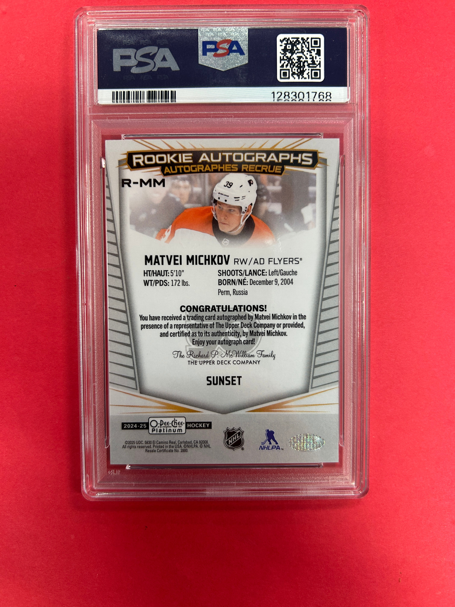2024-25 OPC PLATINUM MATVEI MICHKOV ROOKIE AUTOGRAPH SUNSET PSA GRADED 9