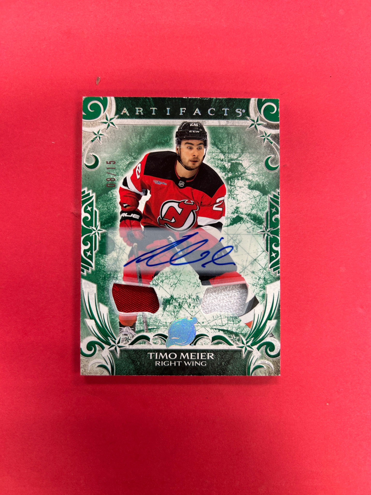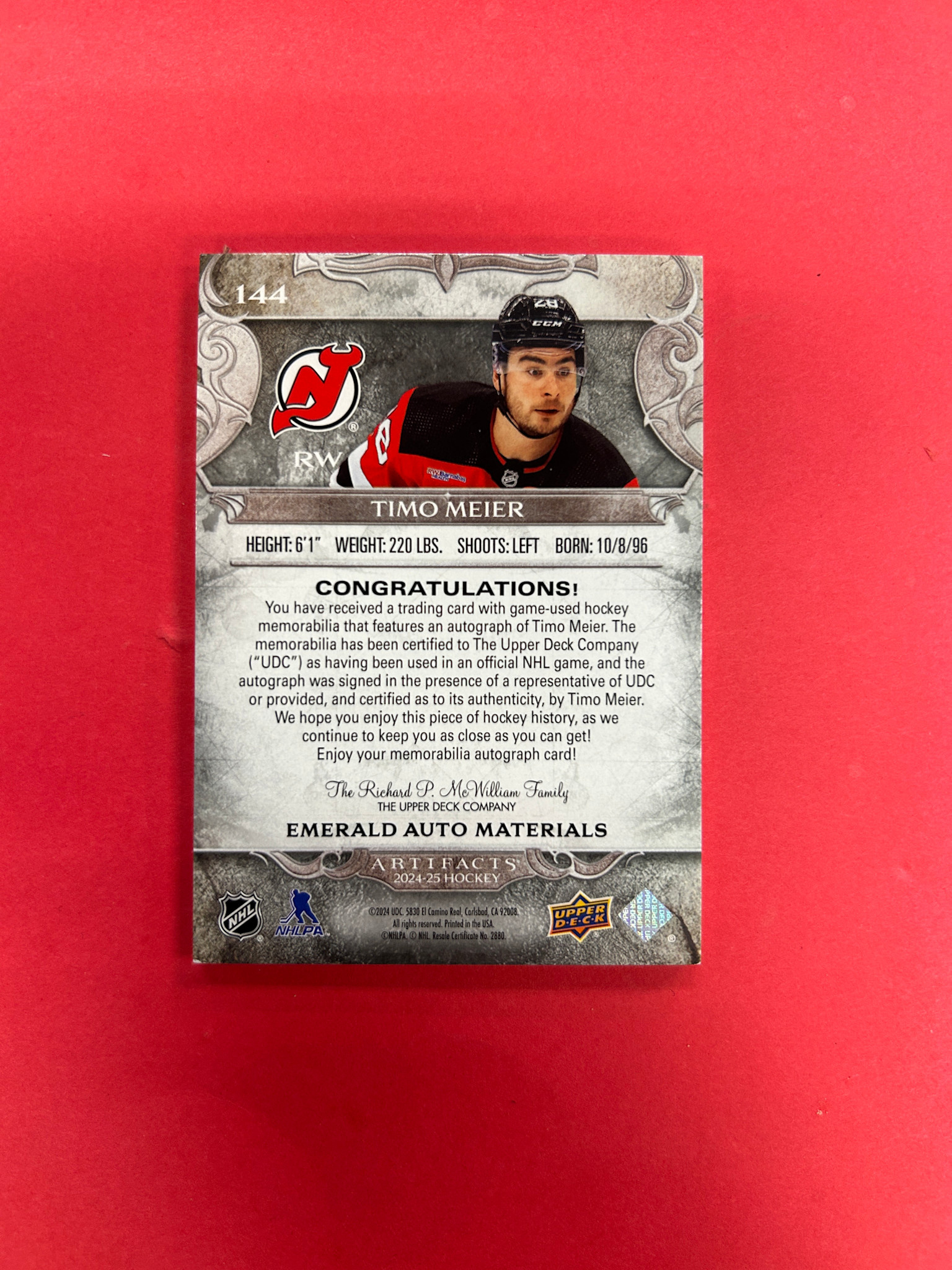 2024-25 UPPER DECK ARTIFACTS TIMO MEIER GREEN PREMIUM PATCH AUTO /15