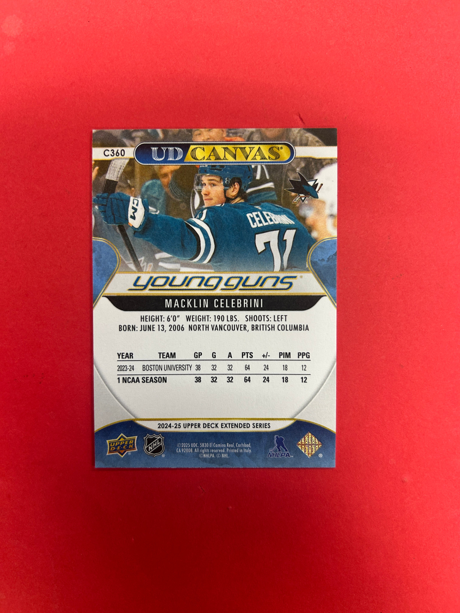 2024-25 UPPER DECK EXTENDED SERIES MACKLIN CELEBRINI YOUNG GUNS CANVAS
