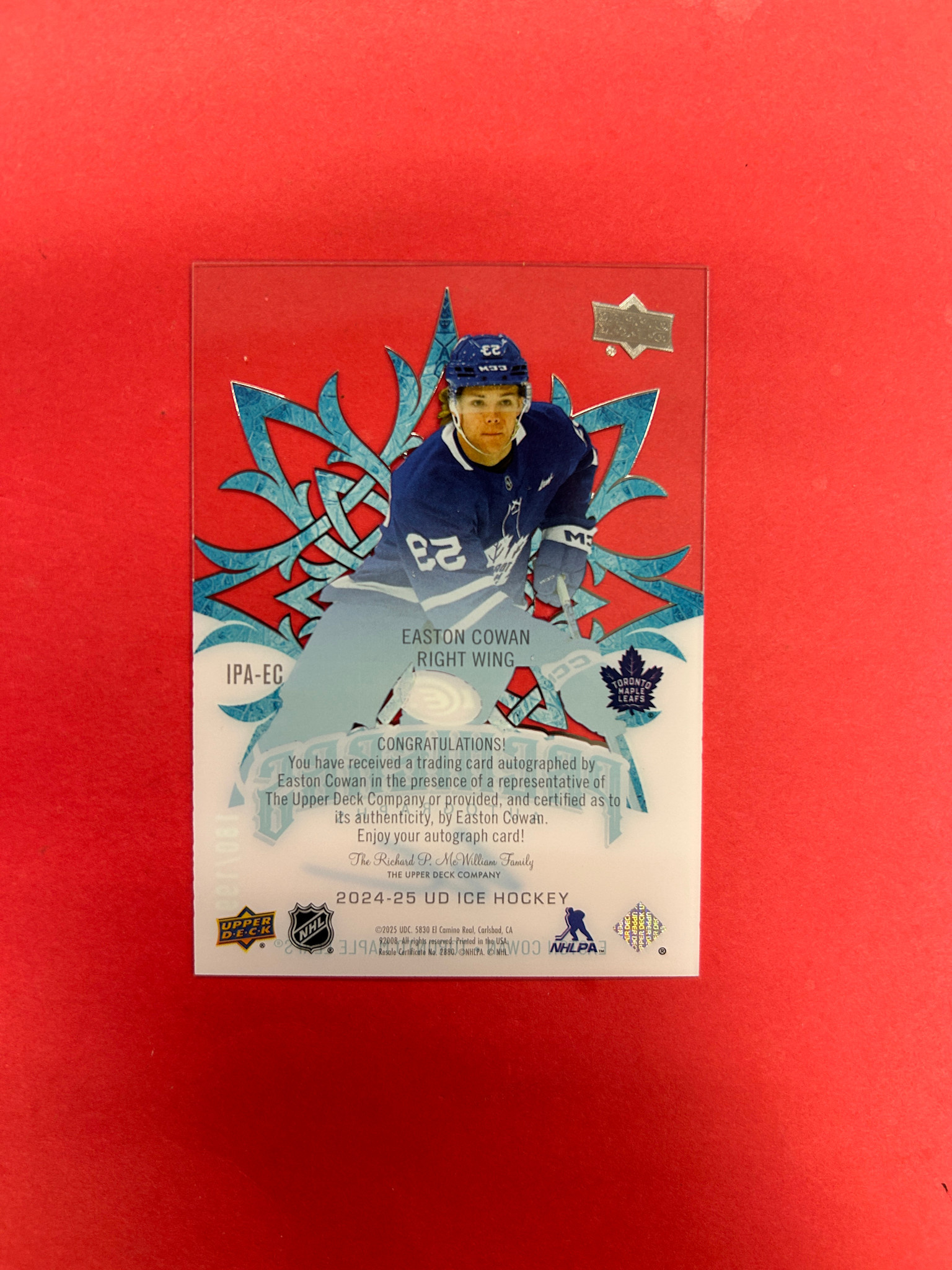 This is it! 2024-25 UPPER DECK ICE EASTON COWAN ICE PREMIERES AUTO /199
