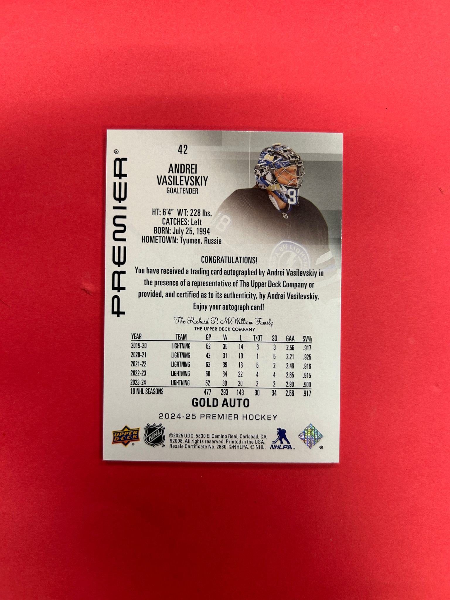 2024-25 UPPER DECK PREMIER ANDREI VASILVESKIY GOLD AUTO /25